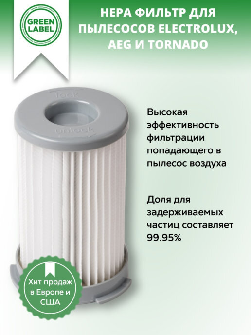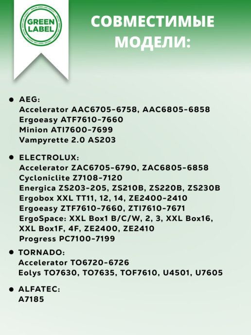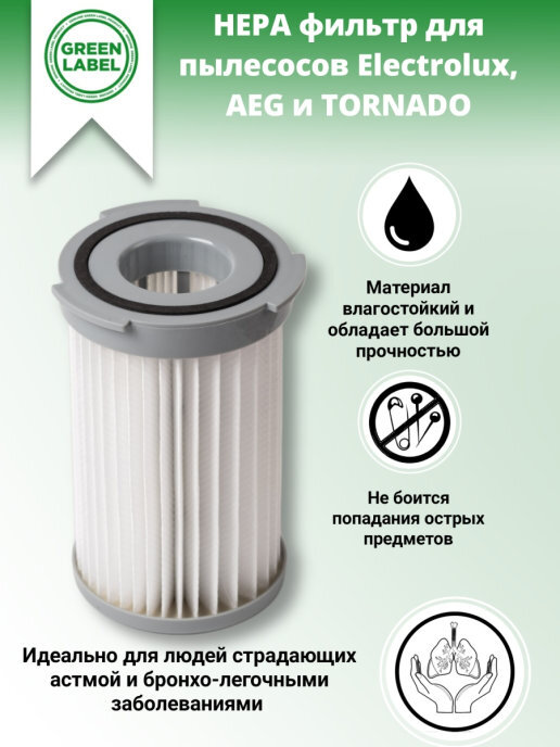 Green Label / HEPA фильтр EF75B / F120 / AEF75B для пылесосов Electrolux (Cycloniclite Z7108-7120, Energica ZS203-205, ZS210В, ZS220В, ZS230В, Progress PC7100-7199) AEG (Accelerator, Ergoeasy, Minion, Vampyrette) и TORNADO (Eolys TO7630 TO7635) , Alfatec