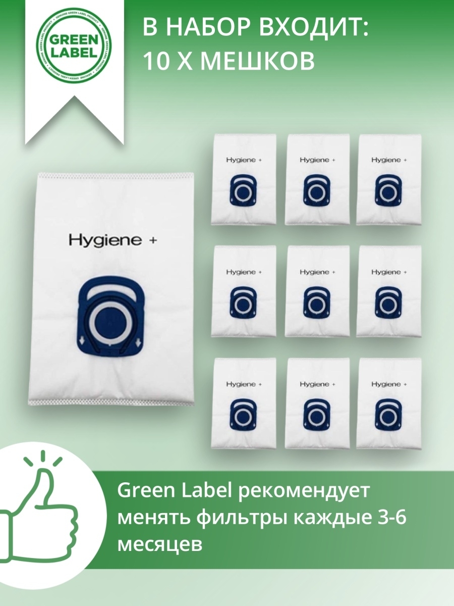 Регулярная замена фильтров и мешков обеспечит максимальную производительность Вашего пылесоса. Green Label рекомендует менять фильтры каждые 3-6 месяцев.