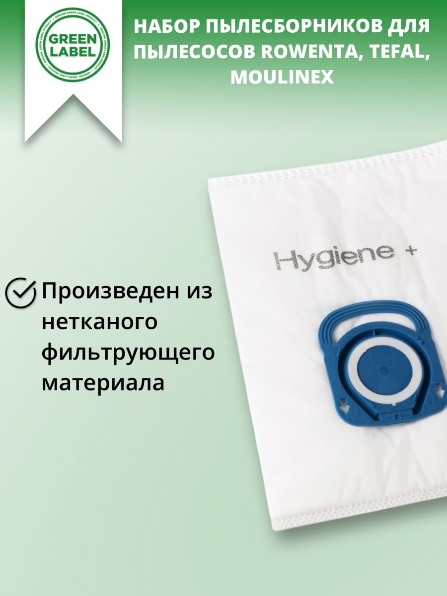 Green Label / Набор мешков- пылесборников ZR200520 для пылесосов Rowenta, Tefal, Moulinex (10 мешков) / Power XXL Silence Force Allergy+ Сompact X-Trem