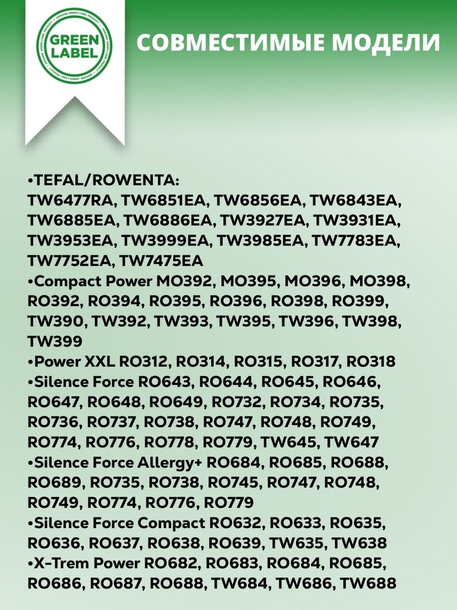 • - Compact Power MO392, MO395, MO396, MO398, RO392, RO394, RO395, RO396, RO398, RO399, TW390, TW392, TW393, TW395, TW396, TW398, TW399 - Power XXL RO312, RO314, RO315, RO317, RO318 - Silence Force RO643, RO644, RO645, RO646, RO647, RO648, RO649, RO732, RO734, RO735, RO736, RO737, RO738, RO747, RO748, RO749, RO774, RO776, RO778, RO779, TW645, TW647 - Silence Force Allergy+ RO684, RO685, RO688, RO689, RO735, RO738, RO745, RO747, RO748, RO749, RO774, RO776, RO779 - Silence Force Compact RO632, RO633, RO635, RO636, RO637, RO638, RO639, TW635, TW638 - X-Trem Power RO682, RO683, RO684, RO685, RO686, RO687, RO688, TW684, TW686, TW688 - X-Trem- Compact Power MO392, MO395, MO396, MO398, RO392, RO394, RO395, RO396, RO398, RO399, TW390, TW392, TW393, TW395, TW396, TW398, TW399 - Power XXL RO312, RO314, RO315, RO317, RO318 - Silence Force RO643, RO644, RO645, RO646, RO647, RO648, RO649, RO732, RO734, RO735, RO736, RO737, RO738, RO747, RO748, RO749, RO774, RO776, RO778, RO779, TW645, TW647 - Silence Force Allergy+ RO684, RO685, RO688, RO689, RO735, RO738, RO745, RO747, RO748, RO749, RO774, RO776, RO779 - Silence Force Compact RO632, RO633, RO635, RO636, RO637, RO638, RO639, TW635, TW638 - X-Trem Power RO682, RO683, RO684, RO685, RO686, RO687, RO688, TW684, TW686, TW688 - X-Trem Power Allergy+ RO685 Power Allergy+ RO685