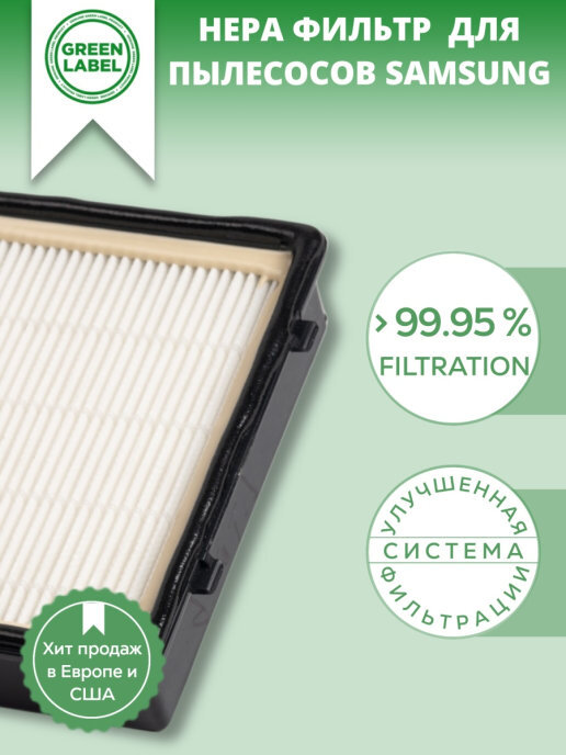 Green Label / НЕРА фильтр DJ97-00492 B, C, K, L, P, Q для пылесосов Samsung SC 65***, SC 66**, SC 67**, SC 68**, Twin Chamber SC6520 SC6522 SC6529 SC6530 SC6532 SC6533 SC6534 SC6540 SC6542 SC6560 SC6562 SC6570 SC6572 SC6573 SC6630 SC6650 SC6657 SC6658