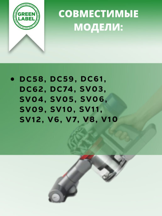 Green Label / Предмоторный фильтр для пылесосов Dyson серий DC58, DC59, DC61, DC62, DC74, SV03, SV04, SV05, SV06, SV09, SV10, SV11, SV12, V6, V7, V8, V10