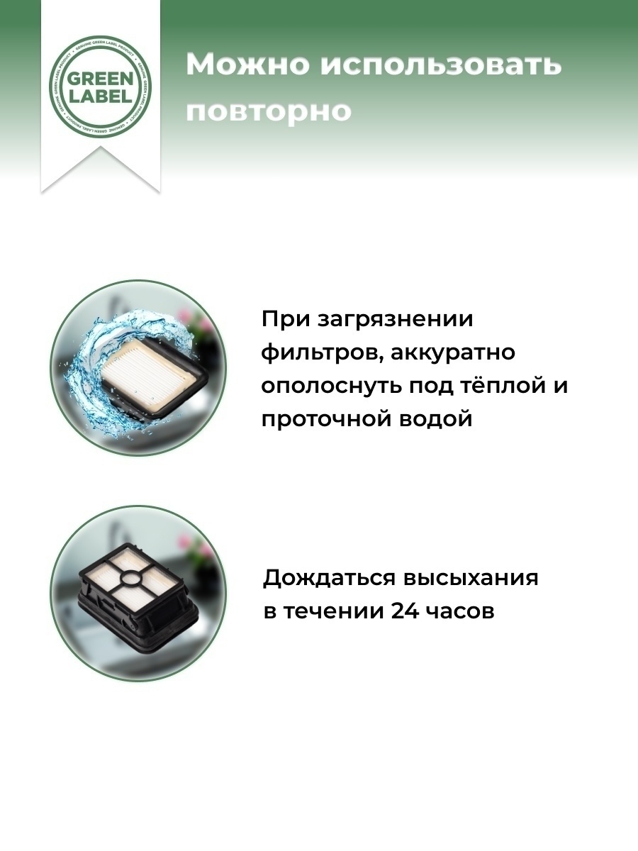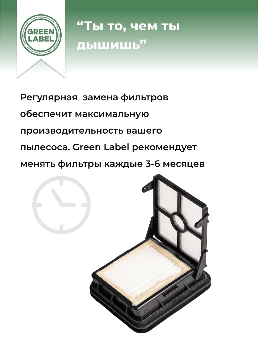 Регулярная замена фильтров обеспечит максимальную производительность Вашего пылесоса. Green Label рекомендует менять фильтры каждые 3-6 месяцев.