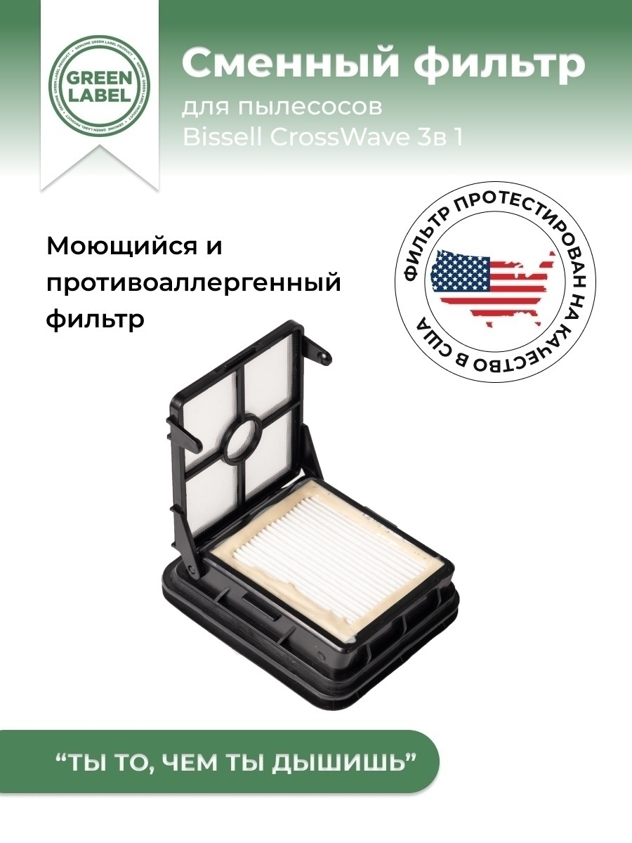 Green Label / Сменный фильтр 1866F, 1866 для пылесосов Bissell CrossWave 3-in-1 Multi-Surface 17132 и Pet Pro 2225N