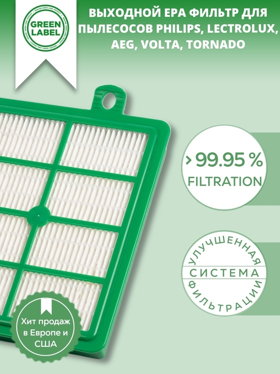 Green Label / Выходной HEPA фильтр FC8031/00 / EFH12 для пылесосов PHILIPS, ELECTROLUX, AEG, VOLTA, TORNADO (FC8031/00 / EFH12) FC8031, FC8038, ZSPC, FC 9071, 9174, 9934, EFH13W, EFH12, EFS1W
