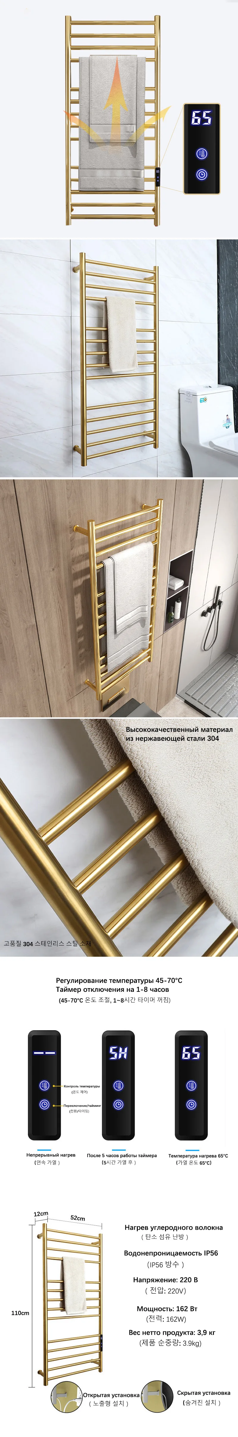 Грелка для полотенец для ванной комнаты золотистая/черная/хромированная. Электрическая грелка для полотенец из нержавеющей стали. Умная электрическая вешалка для полотенец. Скрытая/открытая проволока
