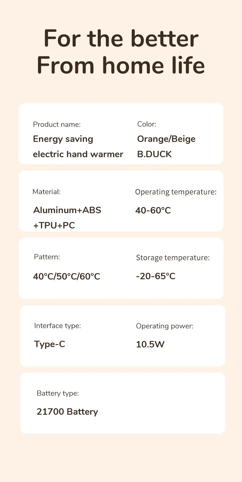 • 【Новейшие технологии нагрева и высокое качество 】по сравнению с традиционной технологией нагрева, JISULIFE hand warmer использует новейшие технологии динамического баланса нагрева, Быстрое нагревание 3s, интеллектуальное Индукционное использование и длительную постоянную температуру. Изготовлен из высокотехнологичного авиационного алюминия и АБС-материалов, приятный для кожи и теплый. Подарите вам теплый, удобный и безопасный опыт.