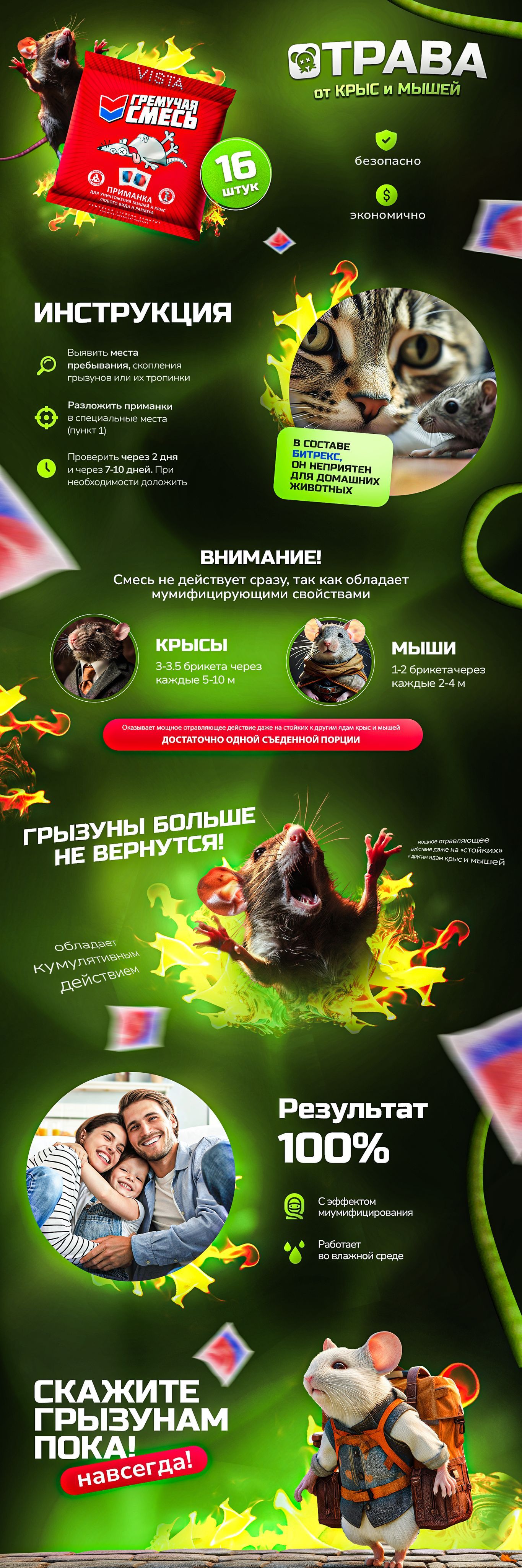 Гремучая смесь.500 грамм Мумифицирующая / Крысиная отрава / Средство от грызунов в брикетах