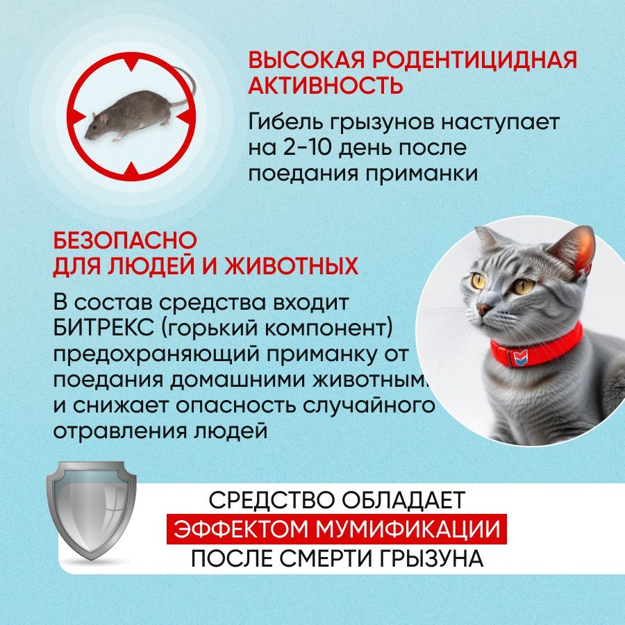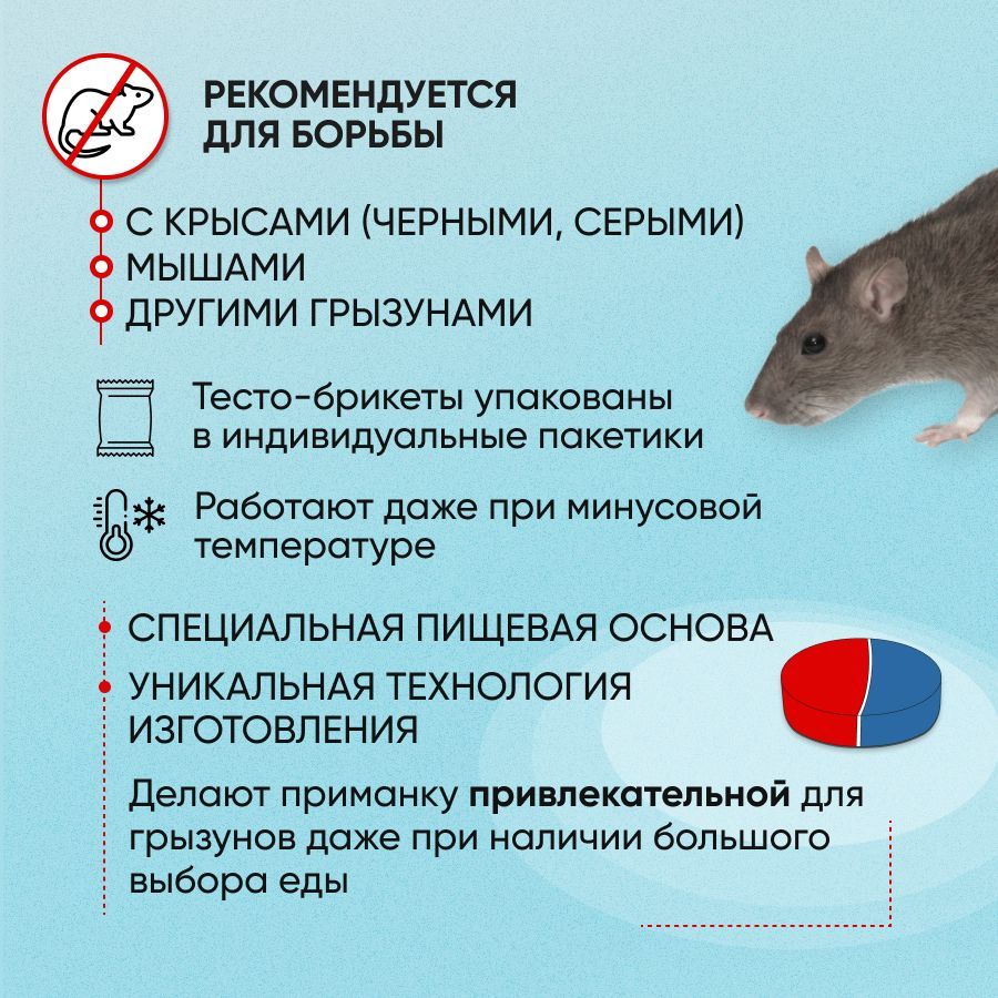 Безопасность и эффективность: Наша смесь представляет собой сильное средство, специально разработанное для эффективной борьбы с грызунами.