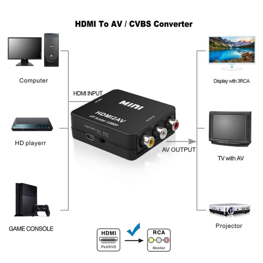 Измените Высокое качество видеосигнала HDMI на нормальный сигнал CVBS, чтобы вы могли воспроизводить его на телевизоре, видеомагнитофоне VHS, DVD-рекордерах и т. Д.