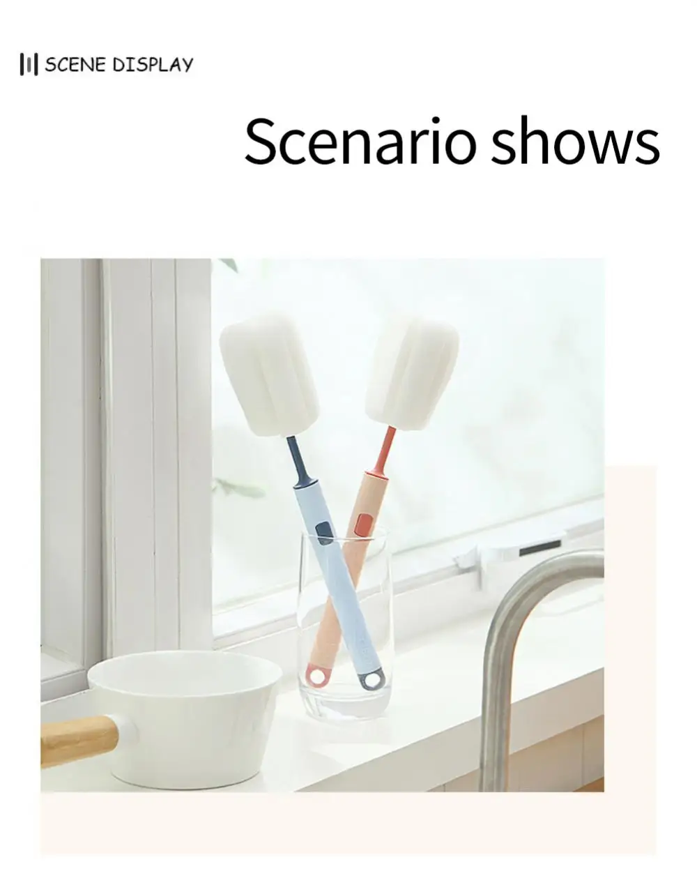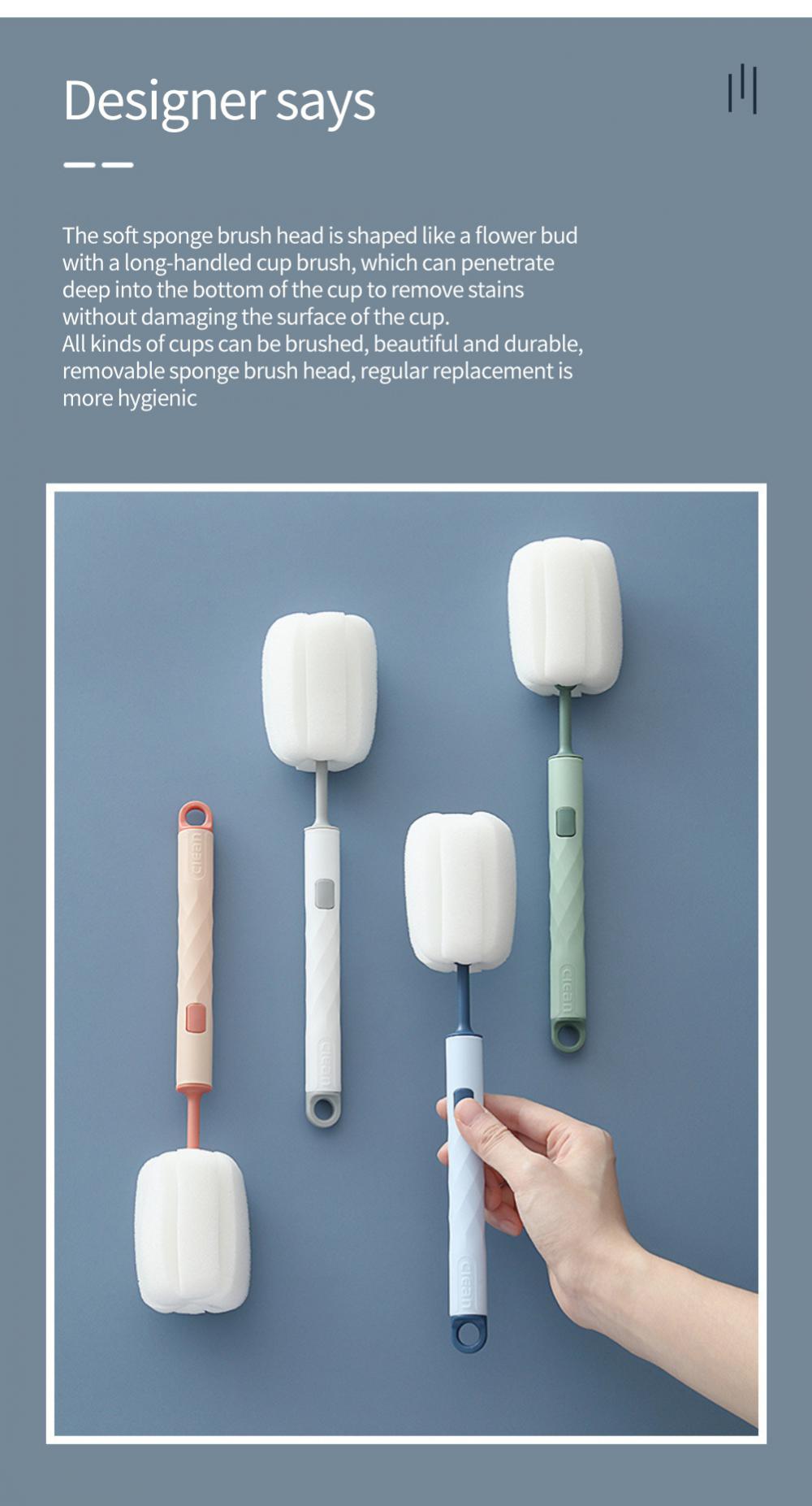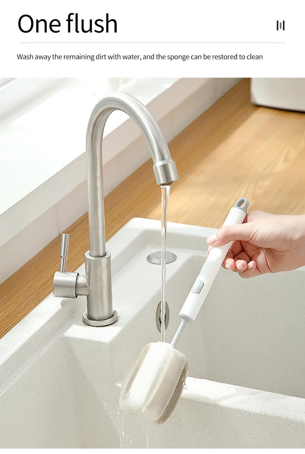 Губчатая щетка для чашек Ручная Мягкая головка Очиститель для стеклянных бутылок с водой Очиститель для детских сосок с длинной ручкой Кухонные аксессуары