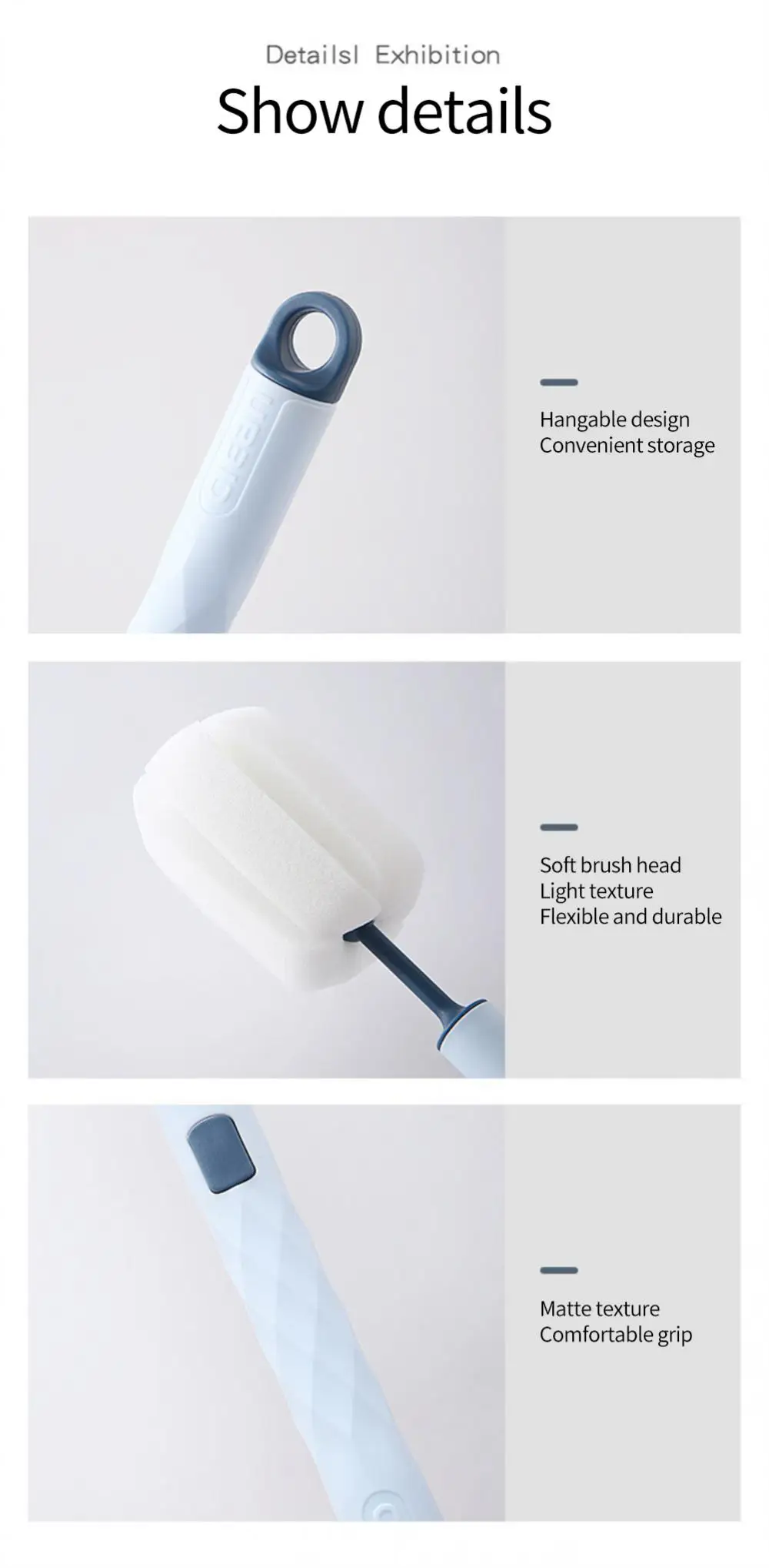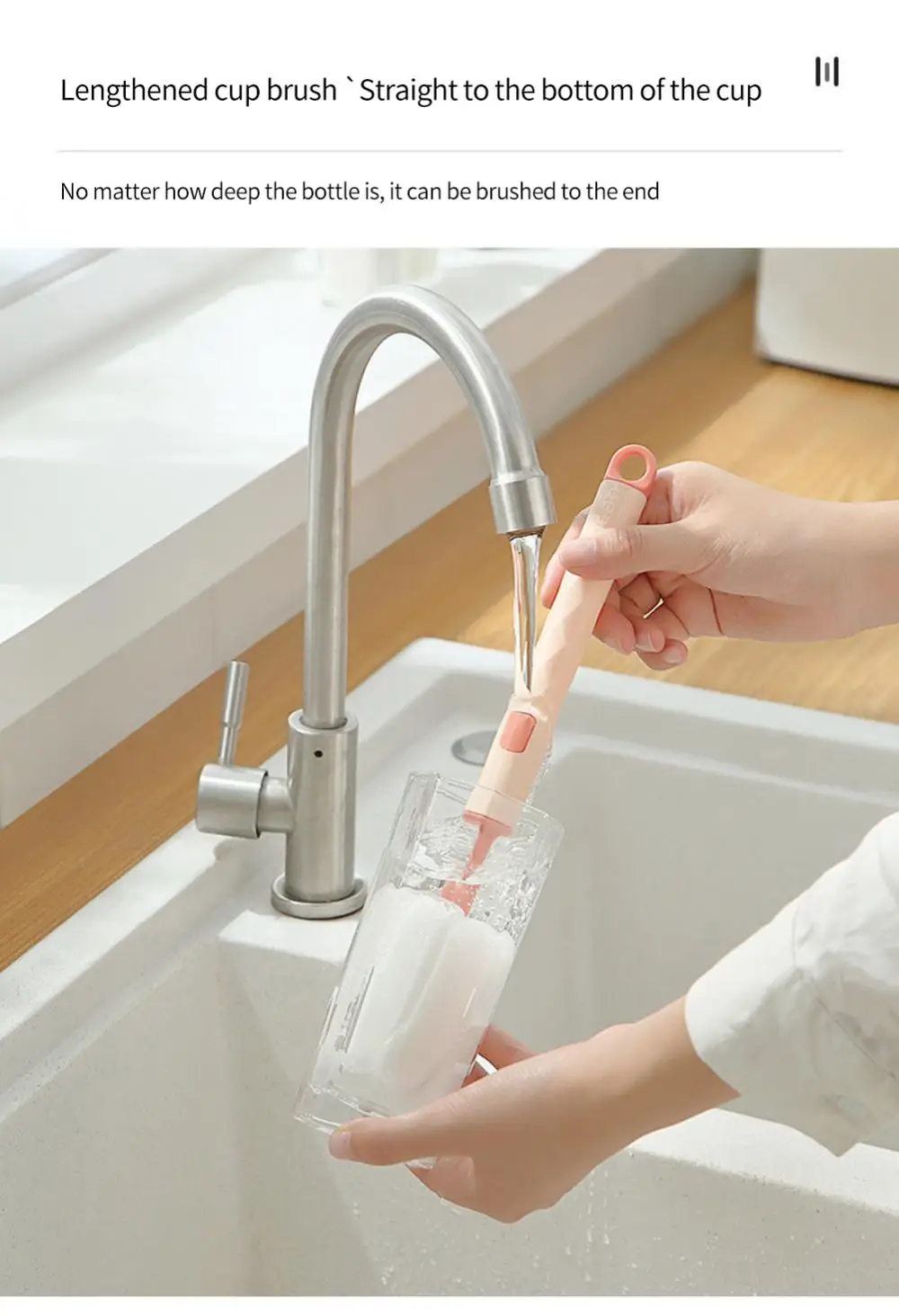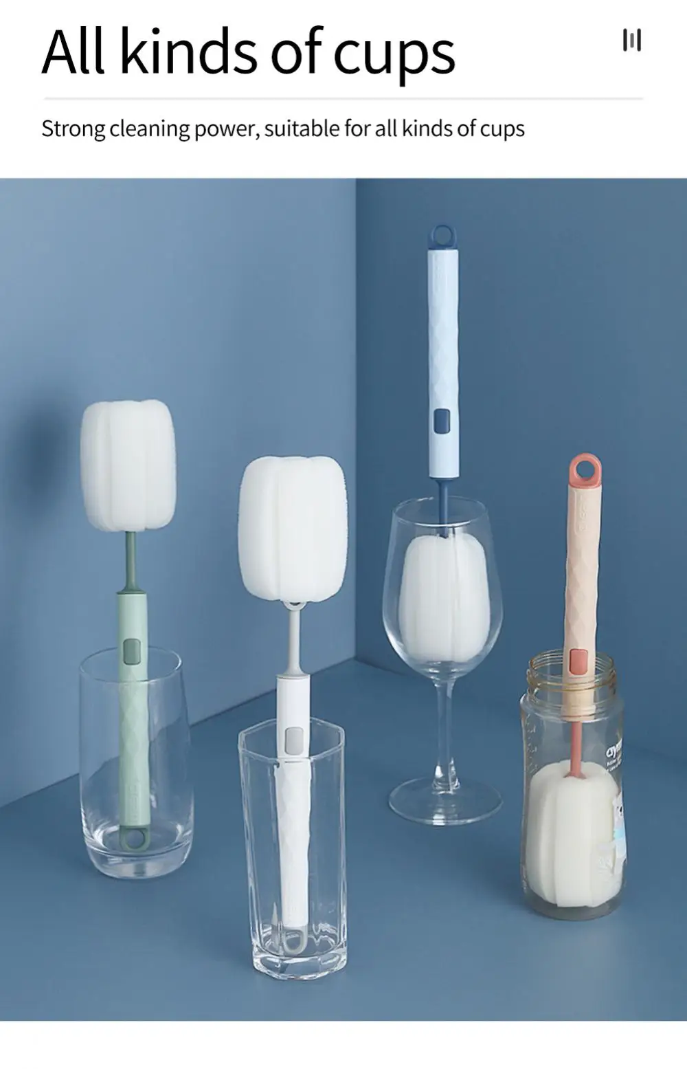 Губчатая щетка для чашек Ручная Мягкая головка Очиститель для стеклянных бутылок с водой Очиститель для детских сосок с длинной ручкой Кухонные аксессуары