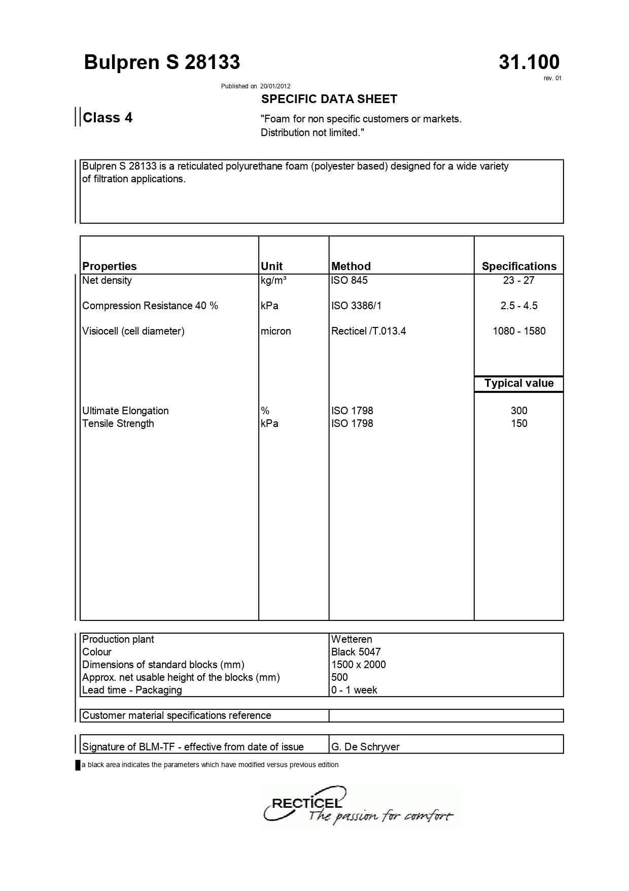 Губчатый фильтр Recticel Ретикулированный PPi45 лист 500х500х10мм