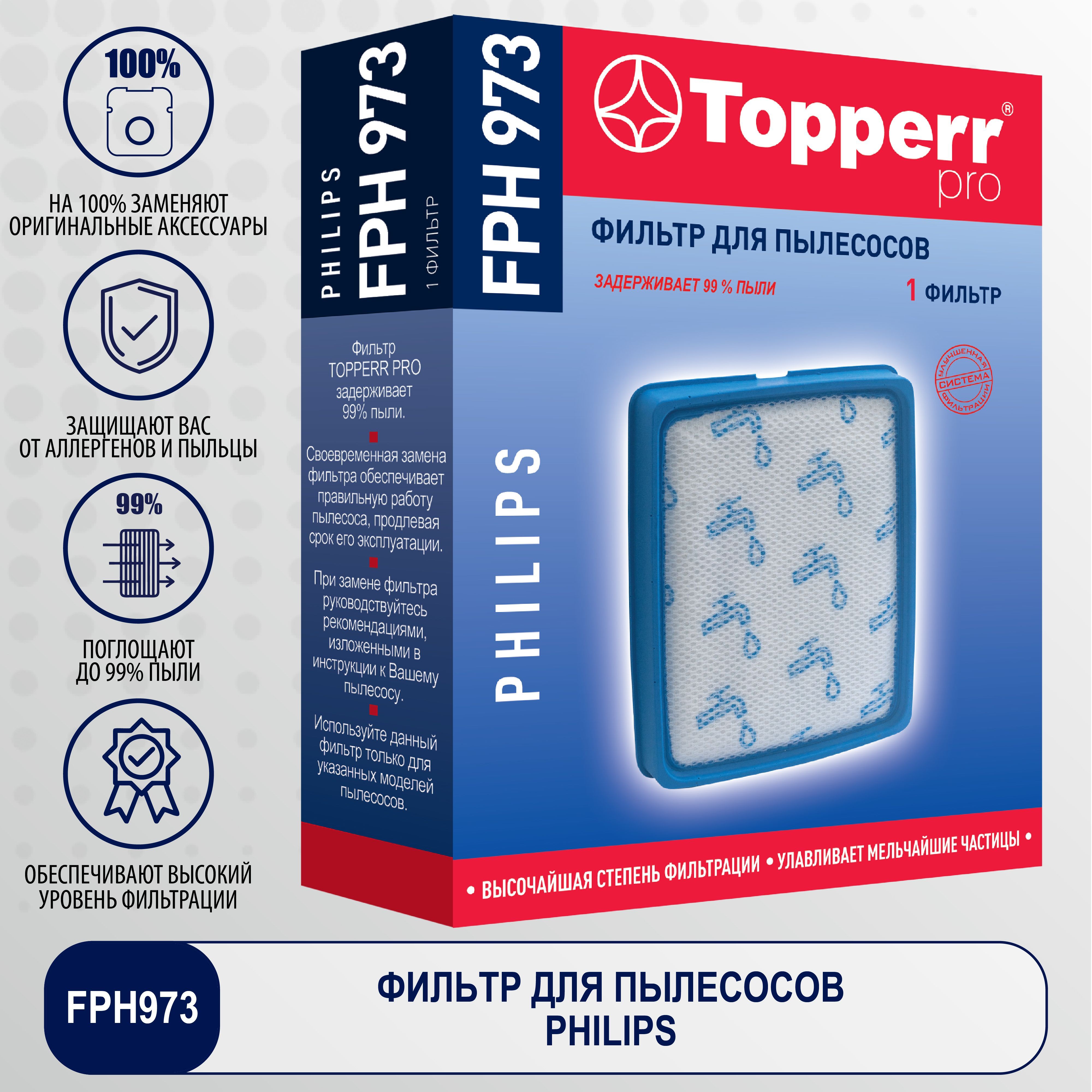 Губчатый фильтр Topperr FPH 973 для пылесоса PHILIPS PowerProExpert / Фильтр для пылесоса арт. 1189