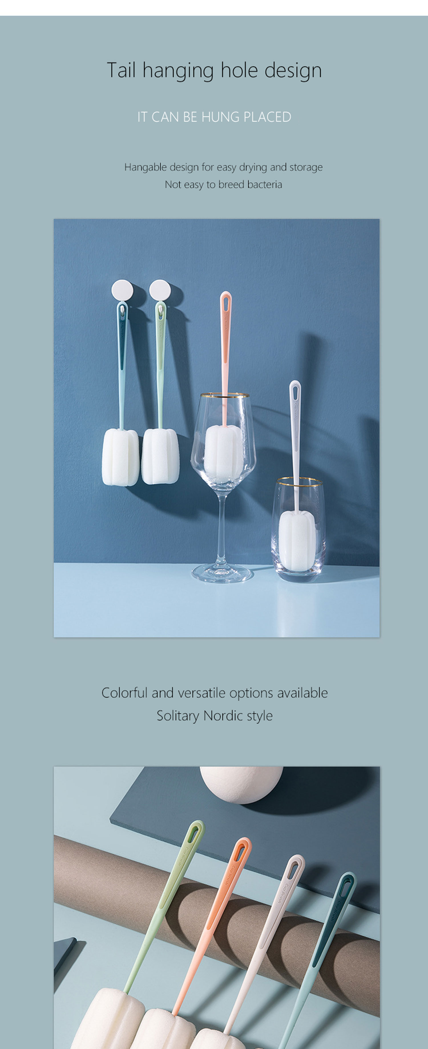 Губка для мытья посуды Щетка для чистки бутылок с 4 цветами Длинная ручка Губка для мытья посуды Крючок для вспенивания Дизайн Кухонные инструменты для чистки