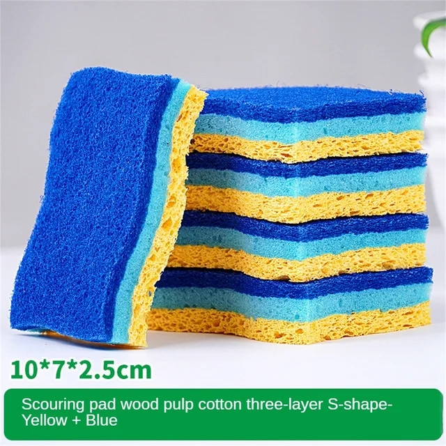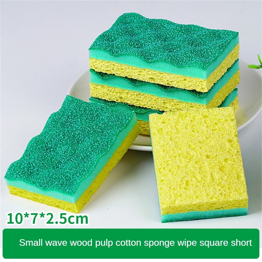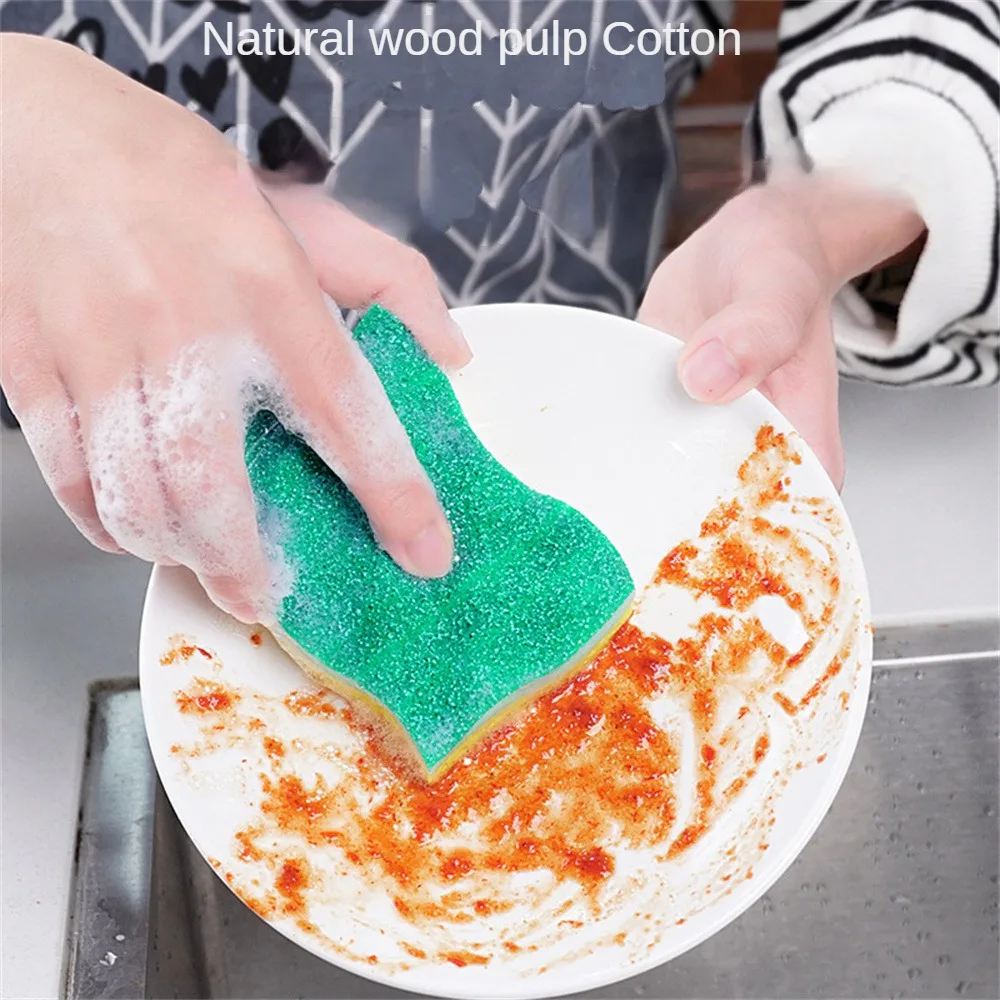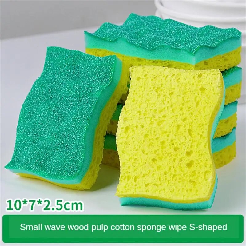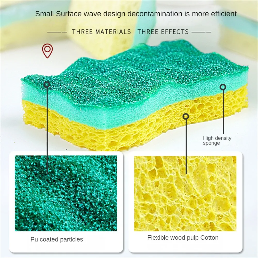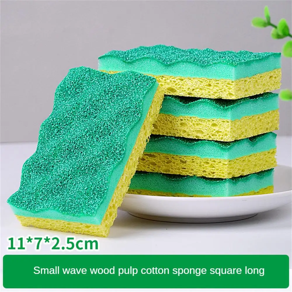 Губка для мытья посуды Волна древесной массы Двусторонняя губка для удаления пятен и ржавчины Утолщенная легкая в уходе щетка для чистки Губка для мытья посуды
