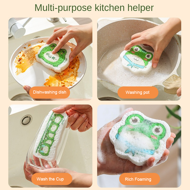 Губка для мытья посуды Cute Frog, не прилипающая, впитывающая