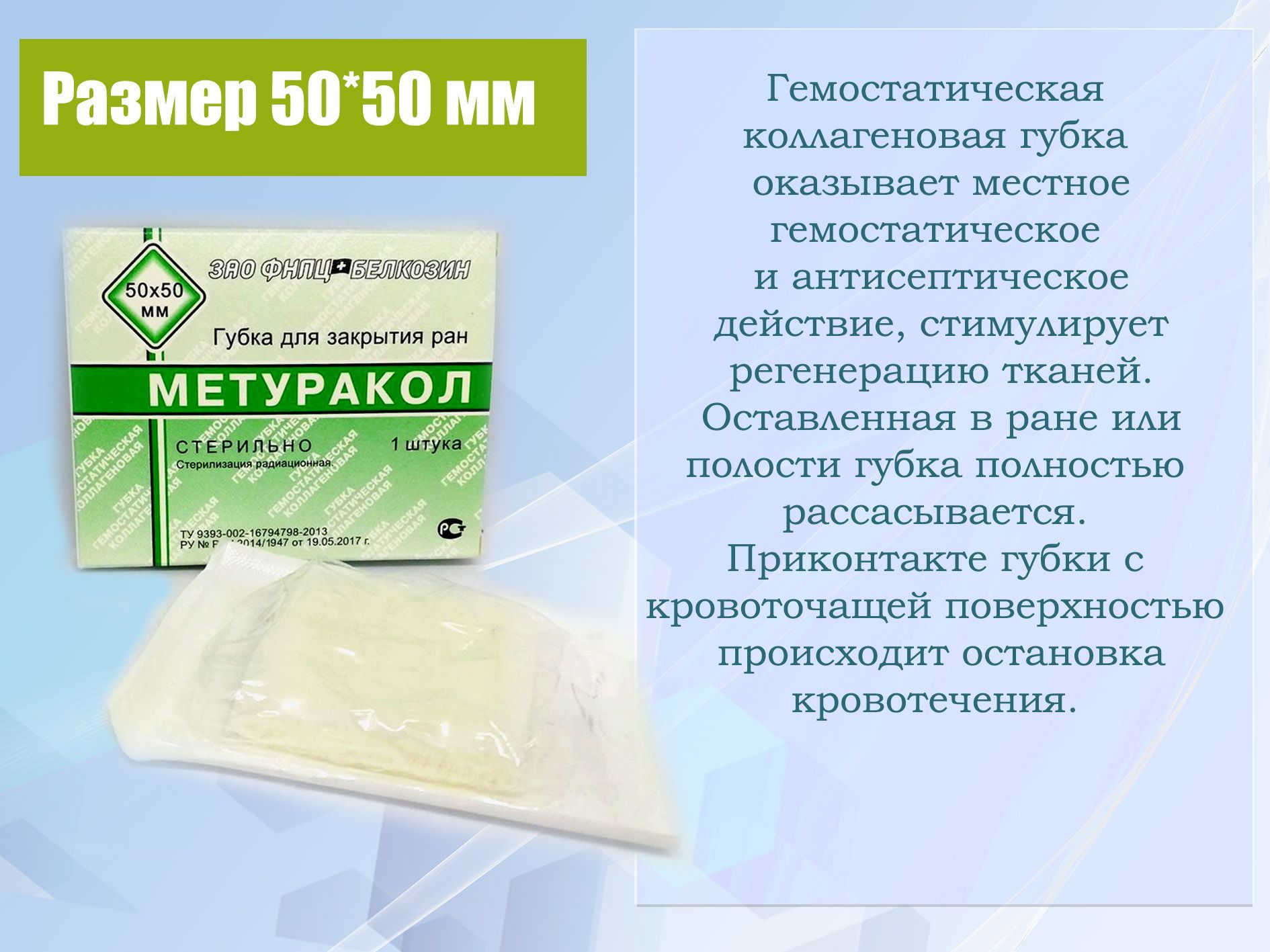 Губка для закрытия ран "Метуракол" 50*50 мм 3 шт.