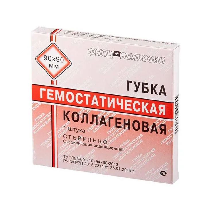 Губка гемостатическая коллагеновая 90х90 мм НПЦ БЕЛКОЗИН