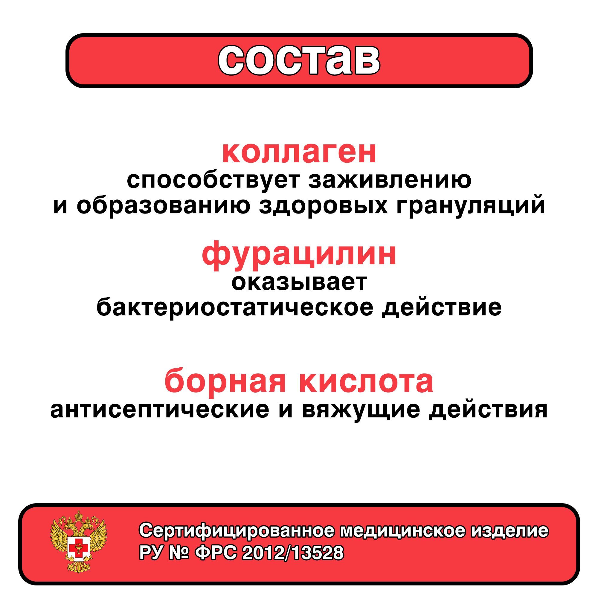 В состав губки гемостатической входят: борная кислота и фурацилин.
