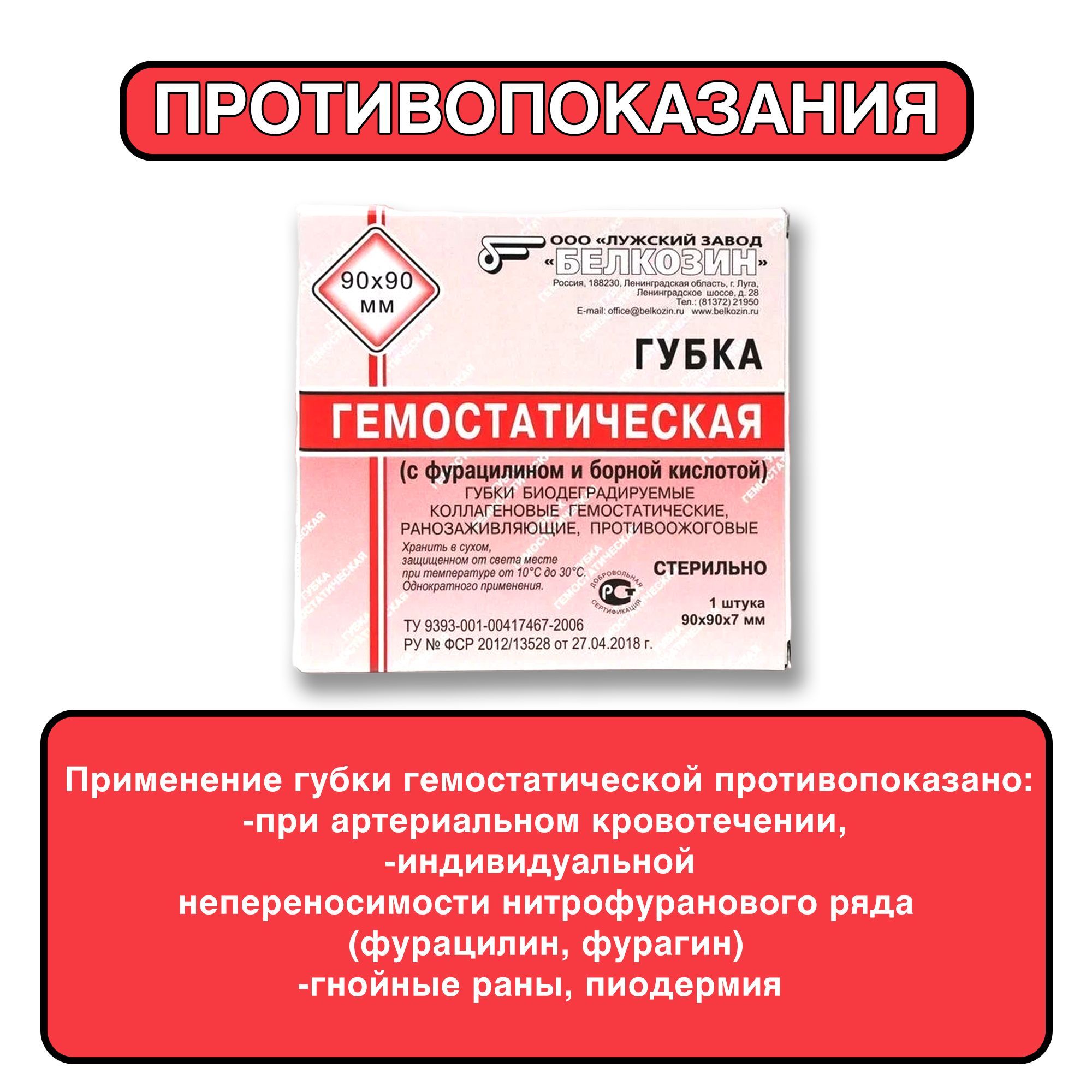 Применение губки гемостатической противопоказано при артериальном кровотечении, индивидуальной непереносимости нитрофуранового ряда (фурацилин, фурагин). Гнойные раны, пиодермия.