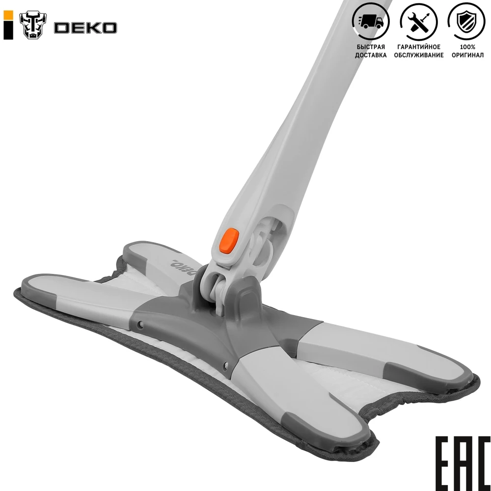 Х-образная швабра для мытья полов с функцией отжима "чистые руки" DEKO DKFM02 подходит для сухой и влажной уборки внутренних и внешних поверхностей, например, деревянных и виниловых полов, плитки, ступеней, дорожек.