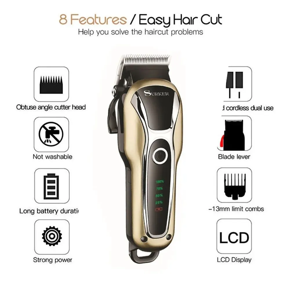 Hair Clipper Professional Barber Set Rechargeable Electric Hair Cutting Machine Beard Trimmer Shaver Cordless Three Piece Suit