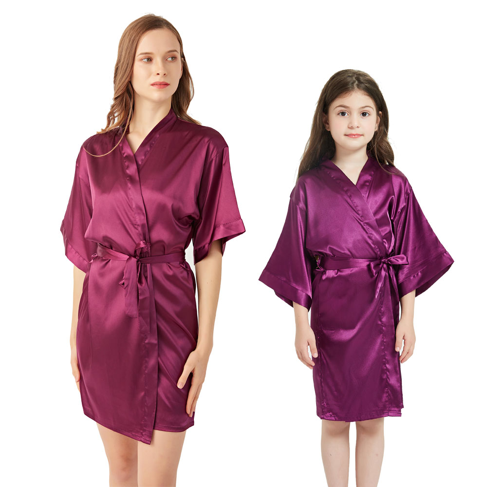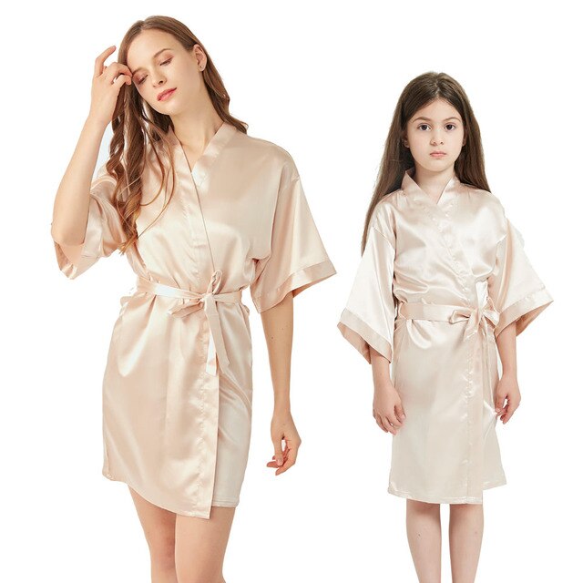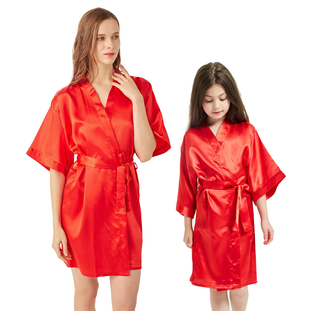 Халат атласный детский для мамы и дочки, семейная одежда одинакового цвета, Шелковый вечерний пикантный банный халат, лето