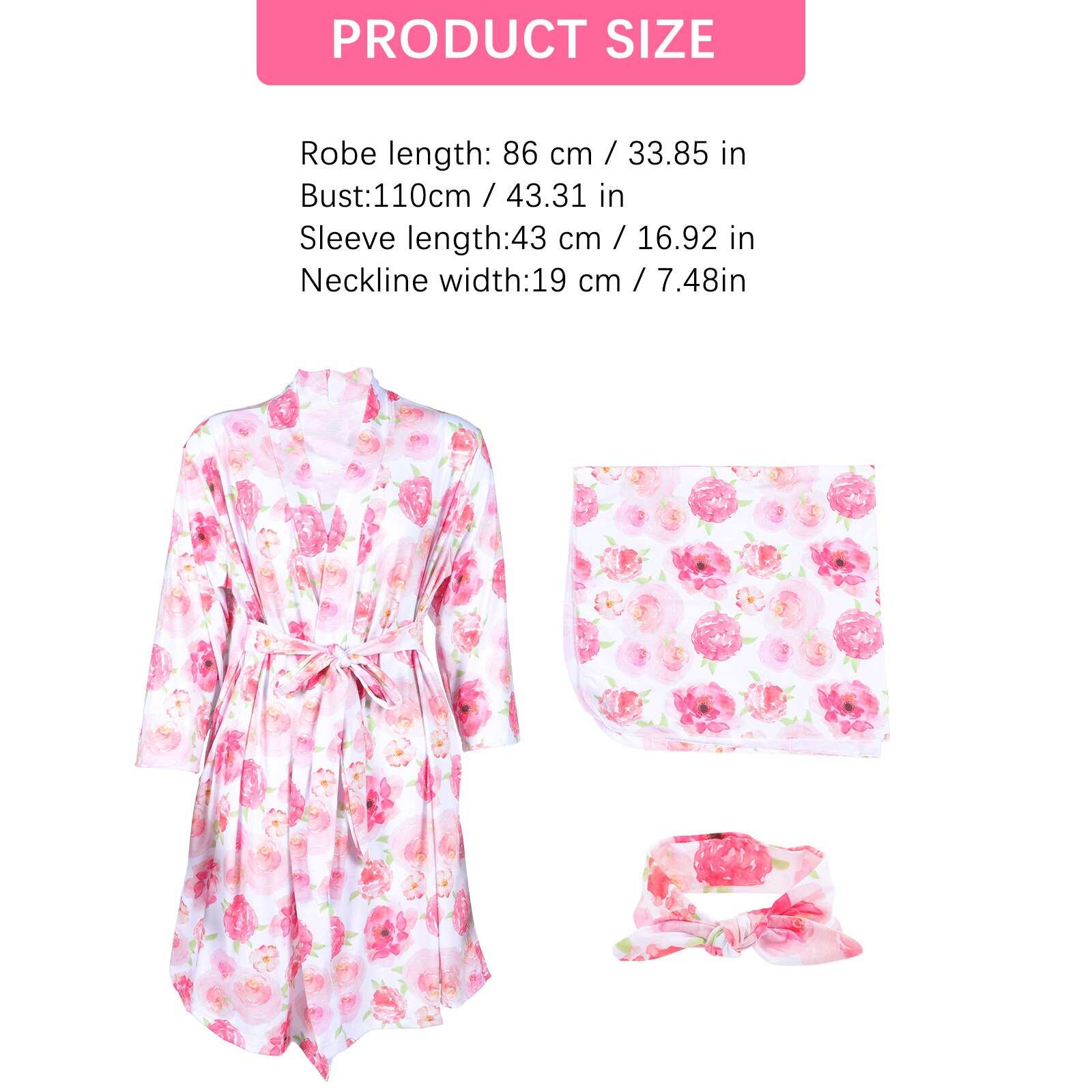 Если вы ищете удивительный подарок для беременных женщин, наш халат для беременных с подходящей детской пеленкой и повязкой для волос может удовлетворить ваши потребности, любыеБеременная женщина будет очень рада получить этот сладкий подарок. Изготовлен из хлопчатобумажной ткани, которая дышит и нежно воздействует на вашу кожу и чувствительную кожу ребенка.