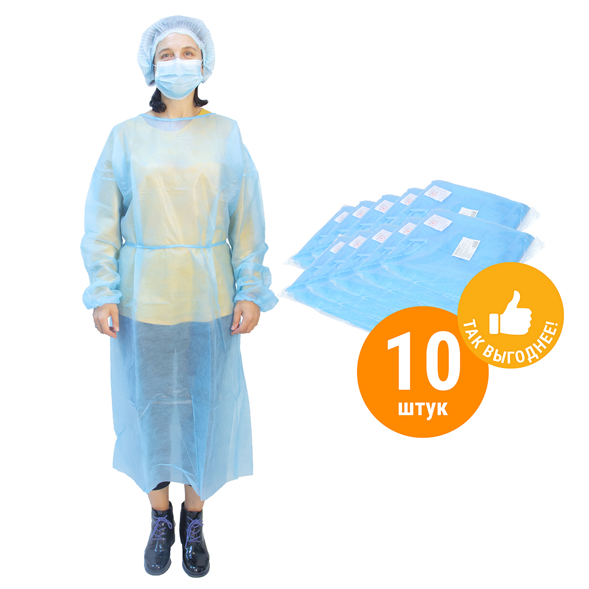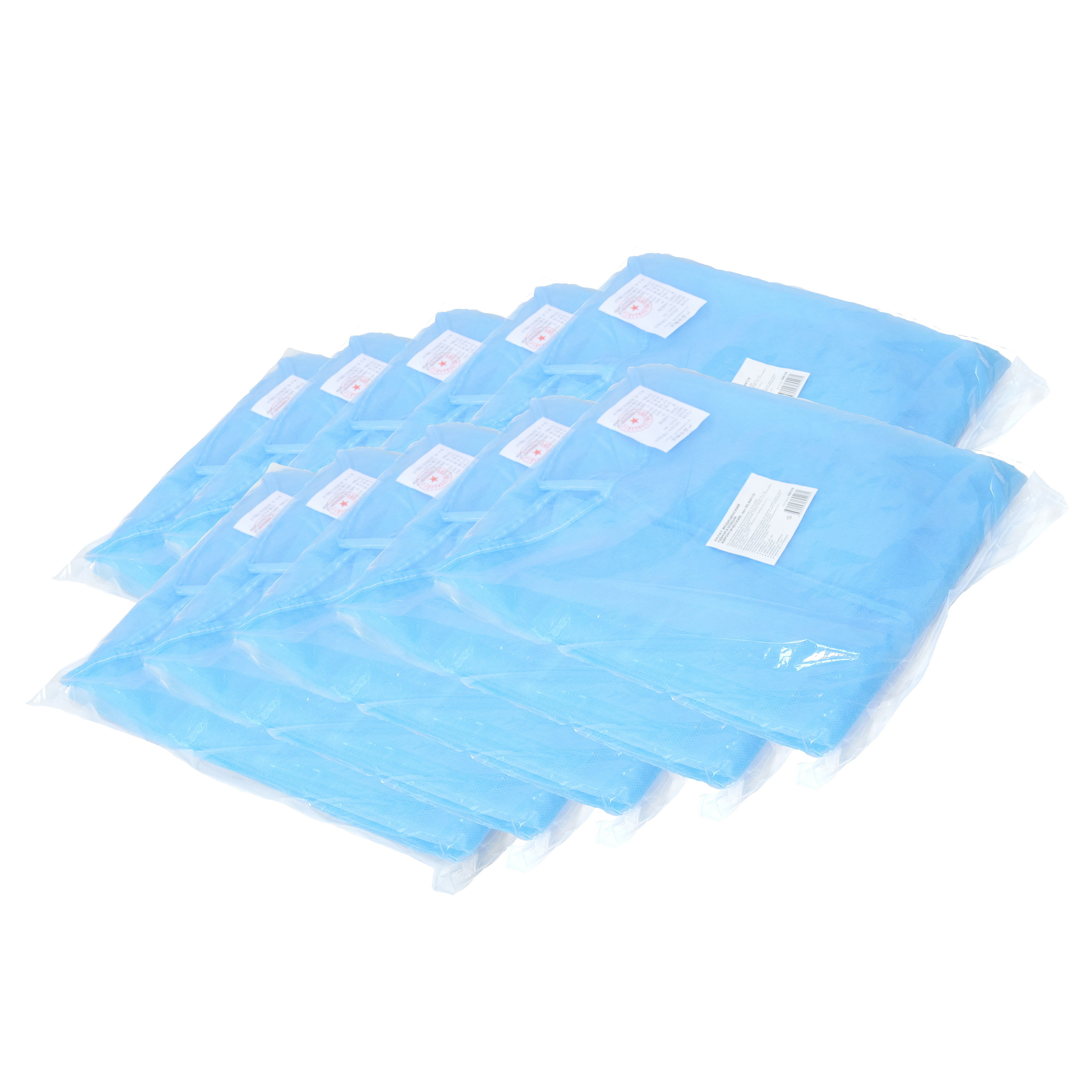 Халат одноразовый, пл. 30 гр./м2, голубой, 10 шт.