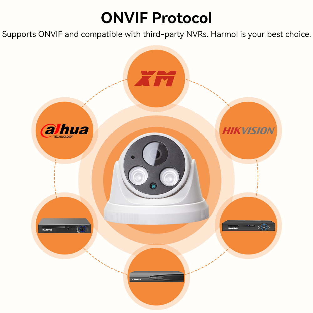 Эта IP-камера с протоколом ONVIF может работать с видеорегистратором ONVIF, чтобы иметь наилучшую совместимость, рекомендуется использовать вместе с нашим видеорегистратором.