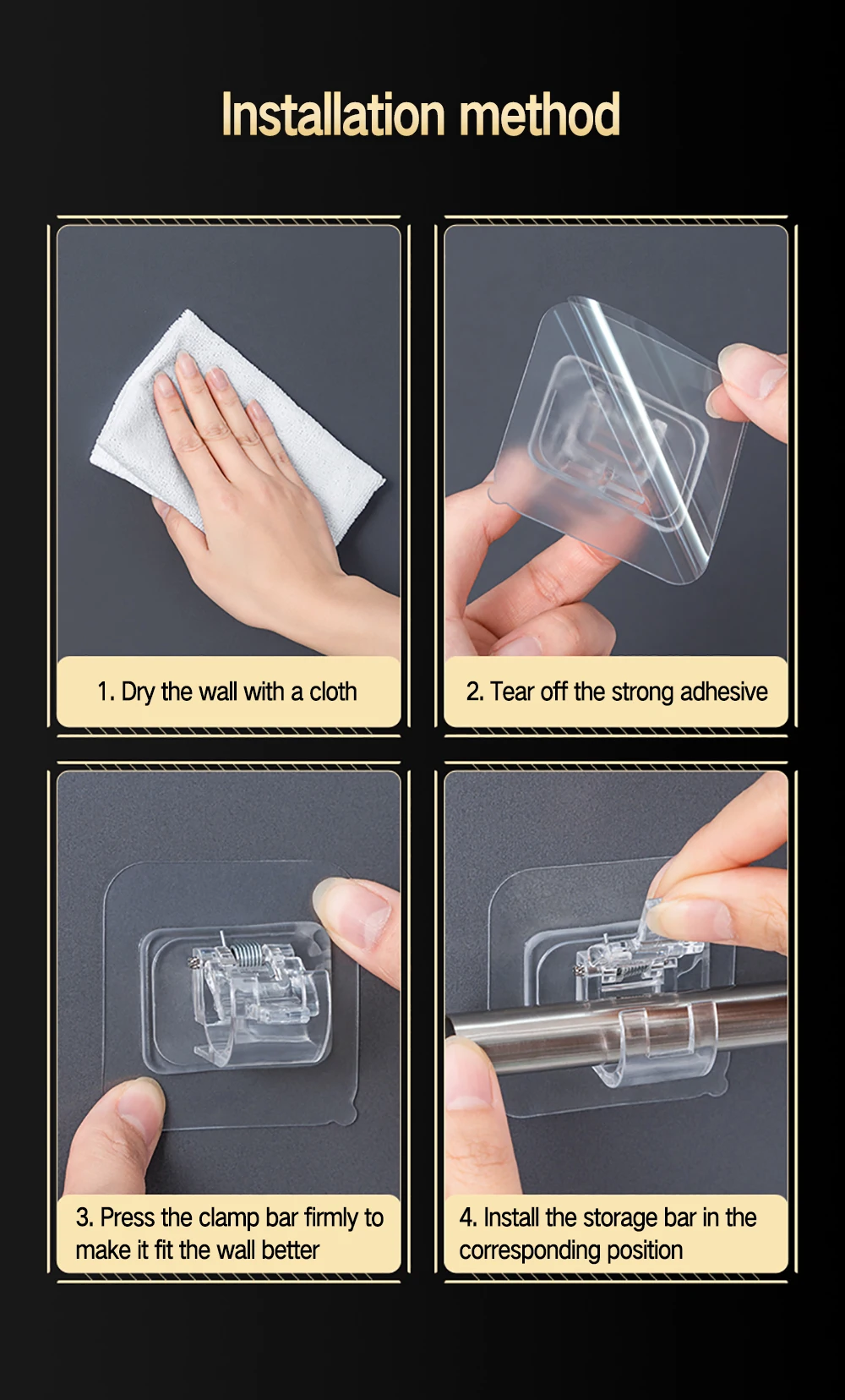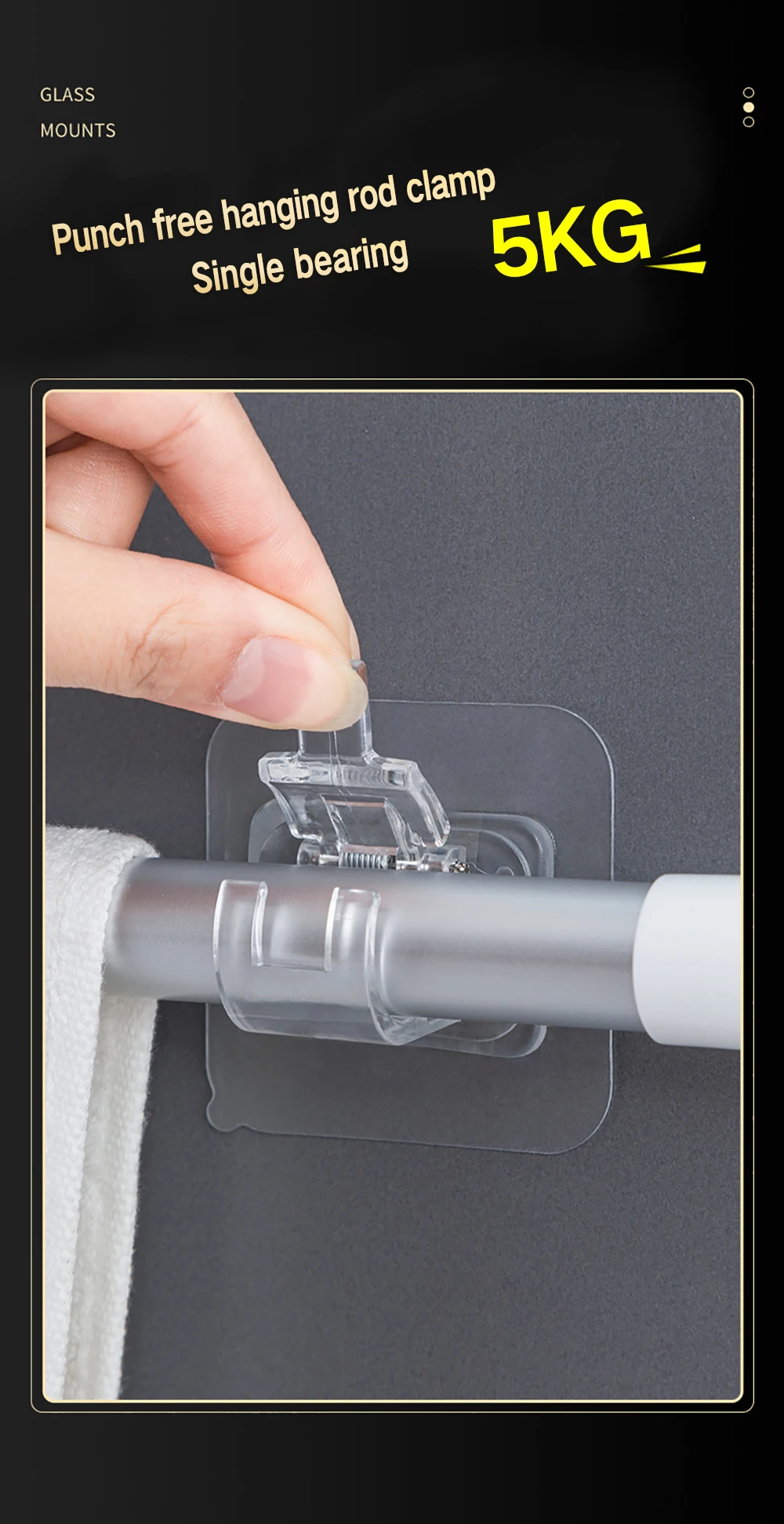 Hanging Rod Holder Clips Self Adhesive Wall Curtain Hanging Clamp Hooks Curtain Shower Curtain Rod Fixing Clip Hanging Rack Hook