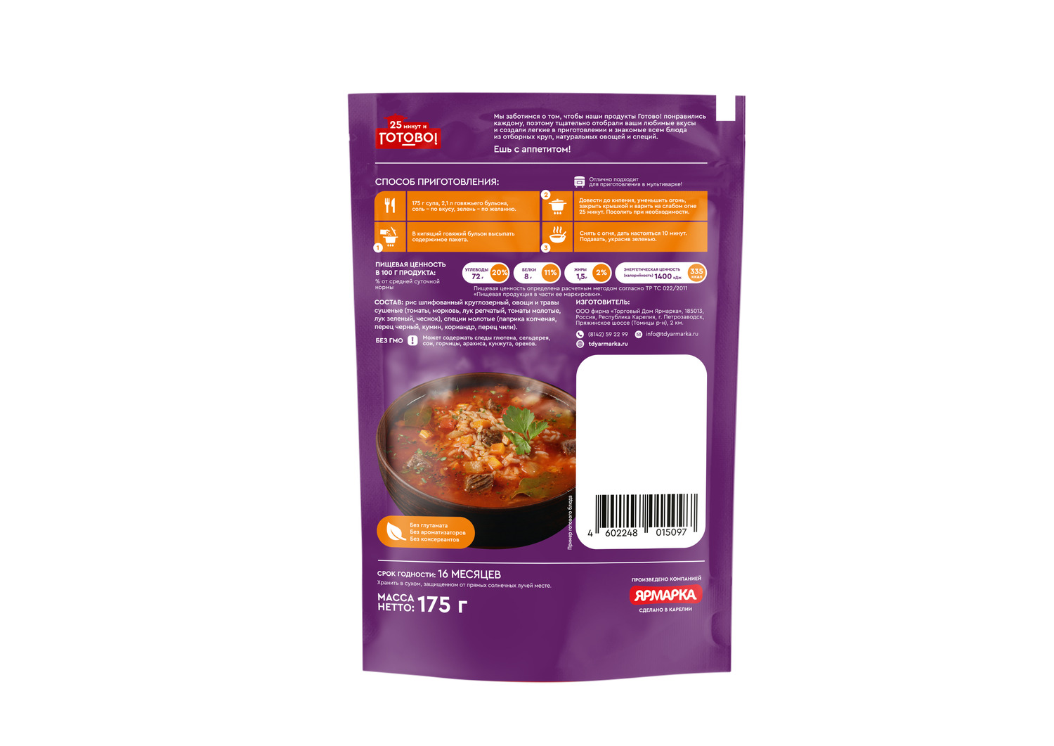 Не содержит: Без ГМО, Глутамат натрия, Искусственные красители, Искусственные добавки
