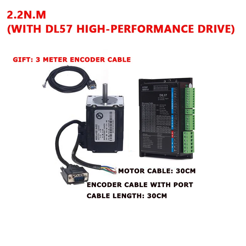 HBS57 2,2 нм-2: 1 xHBS57 привод шагового двигателя + 1 x 57HSE2.2N 2.2N. М. Мотор + 1x30 см кабель энкодера (с портом) + 1x30 см кабель двигателя + 1 x подарок: 3 м кабель энкодера