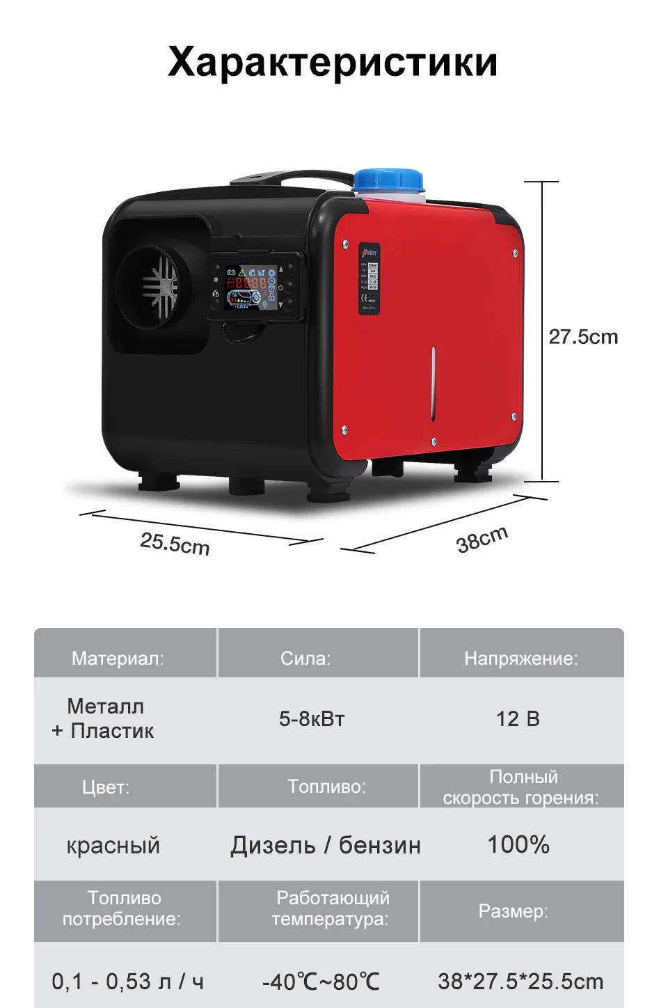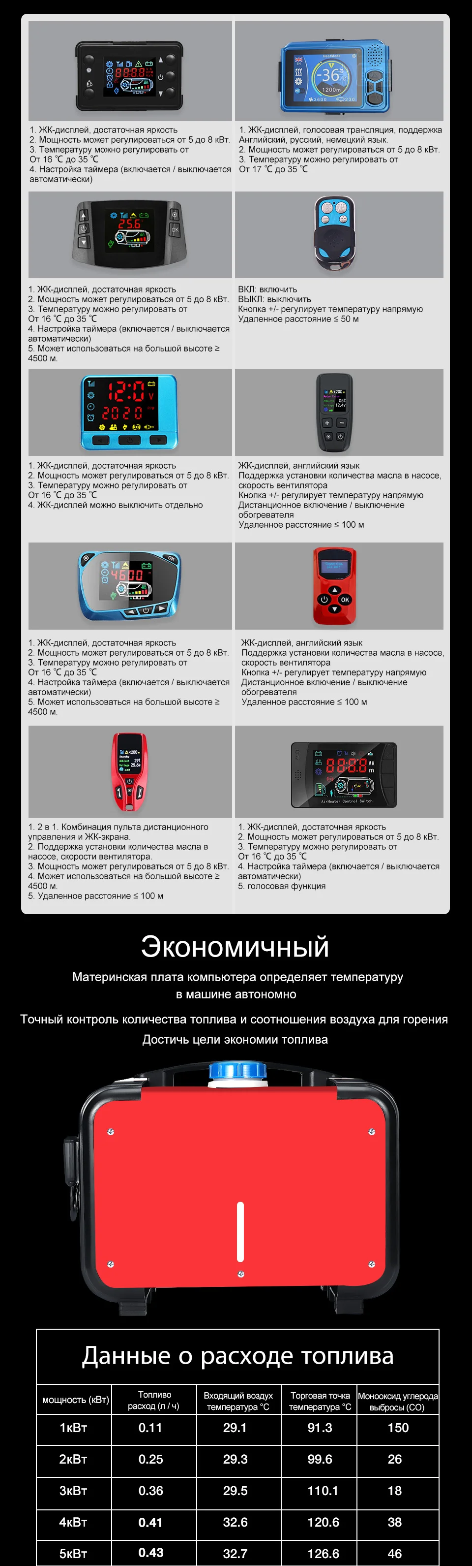 Дизельный подогреватель воздуха 1-8KW Регулируемый 12V одно отверстие ЖК-переключатель + пульт дистанционного управления Интегрированная машина