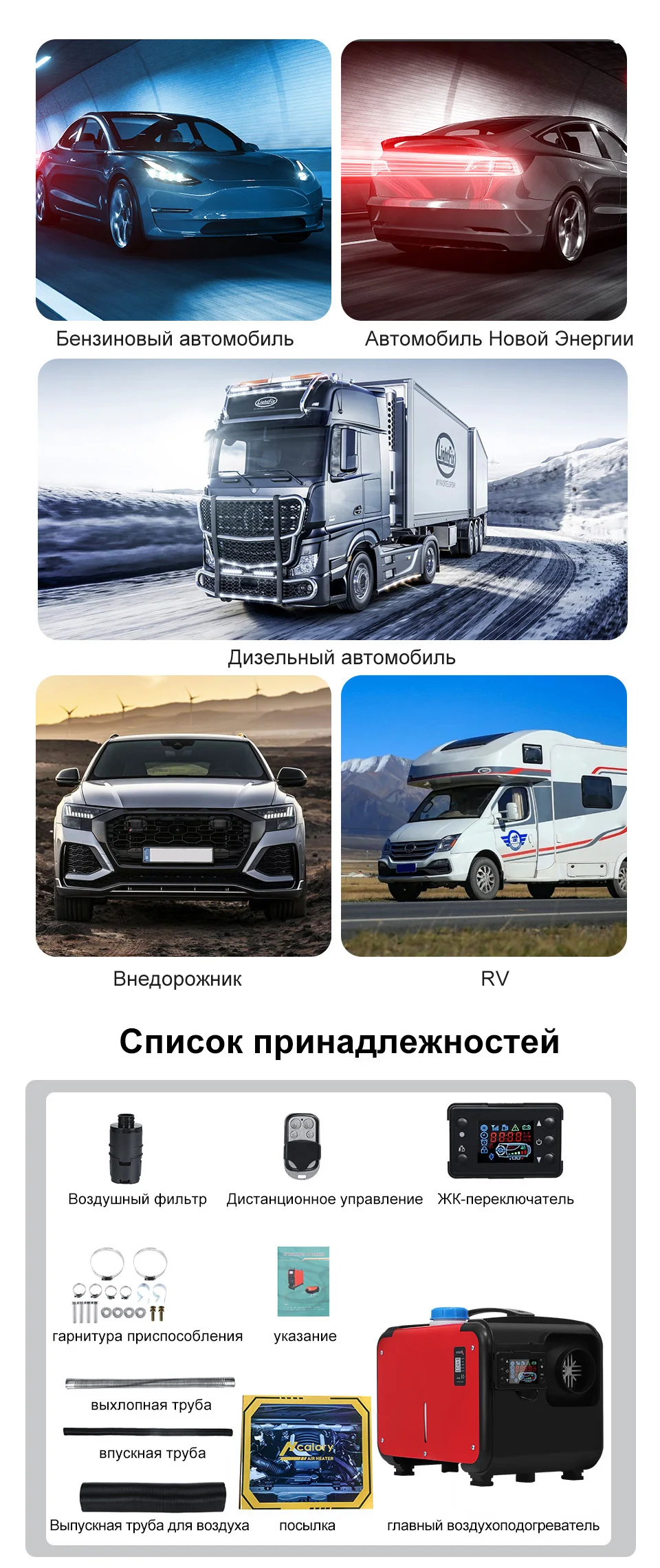 -Нагреватель может быть применен для нагрева кабины грузовых автомобилей, фургонов, аккумуляторных батарей автомобилей и всех видов других транспортных средств.