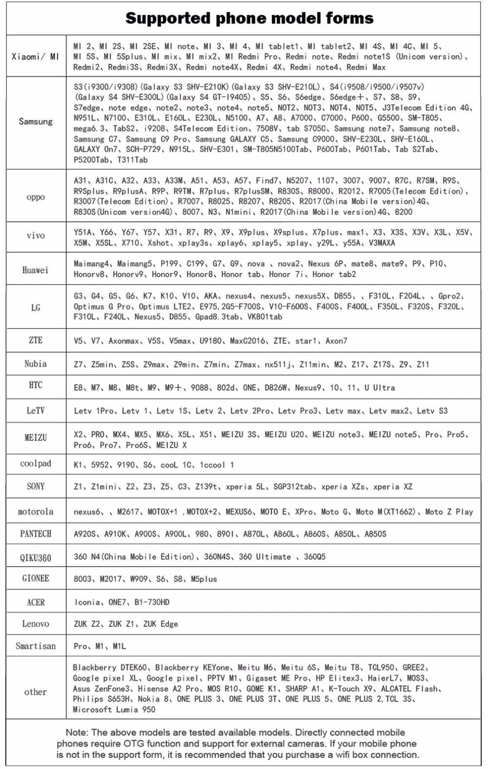 Этот эндоскоп не работает с iPhone! Эндоскоп USB поддерживает только Android 4,0 + Windows 2000/XP/Vista/7/10, Mac OS X 10,6 +.