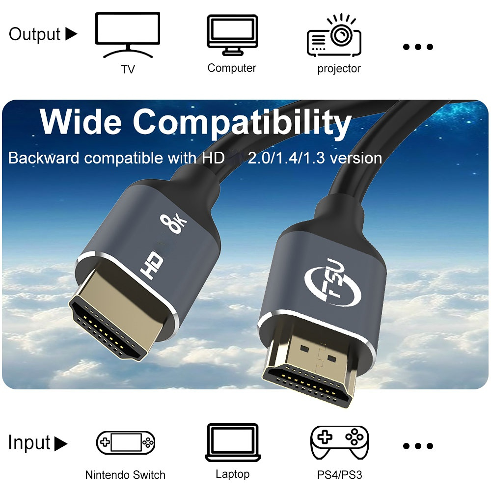 Применимо ко всем устройствам с поддержкой HDMI. Совместимость с устройствами потокового мультимедиа, Apple TV 4K/8K, NVIDIA SHIELD TV, CD/DVD/Blu-ray плеером, Fire TV, Roku Ultra, PS5/PS4/PS4 Slim/PS4 Pro/PS3, Xbox One/360, Подключите коммутатор, компьютер или другое устройство с поддержкой HDMI к телевизору 8K/HD, монитору, дисплей или проектор (Примечание: Убедитесь, что ваше устройство поддерживает 8K/4K)