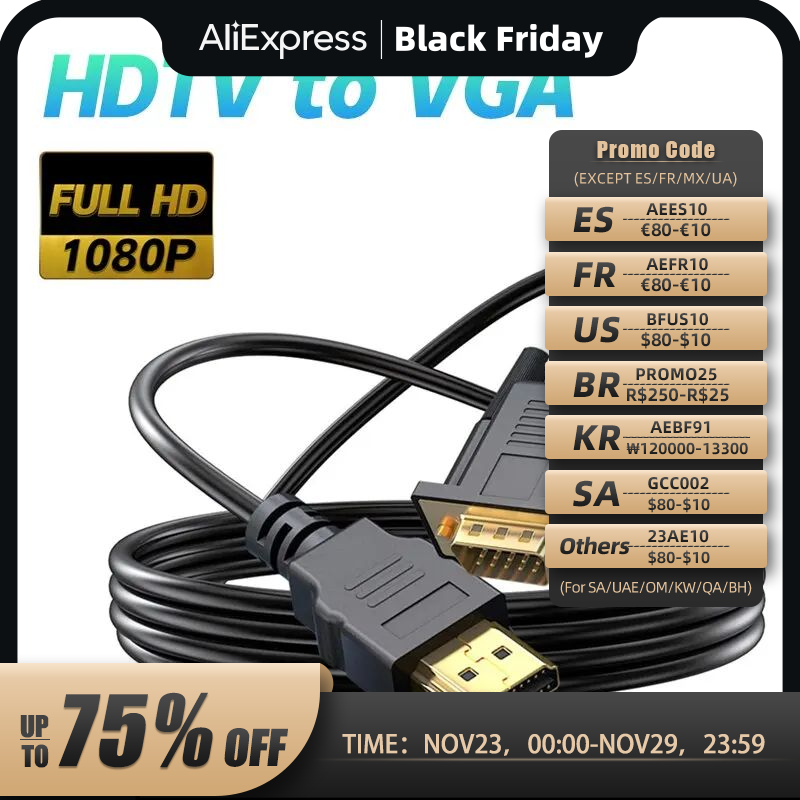 HDMI-штекер к VGA-штекер 1080P 60 Гц HDMI-совместимый кабель к VGA-адаптеру