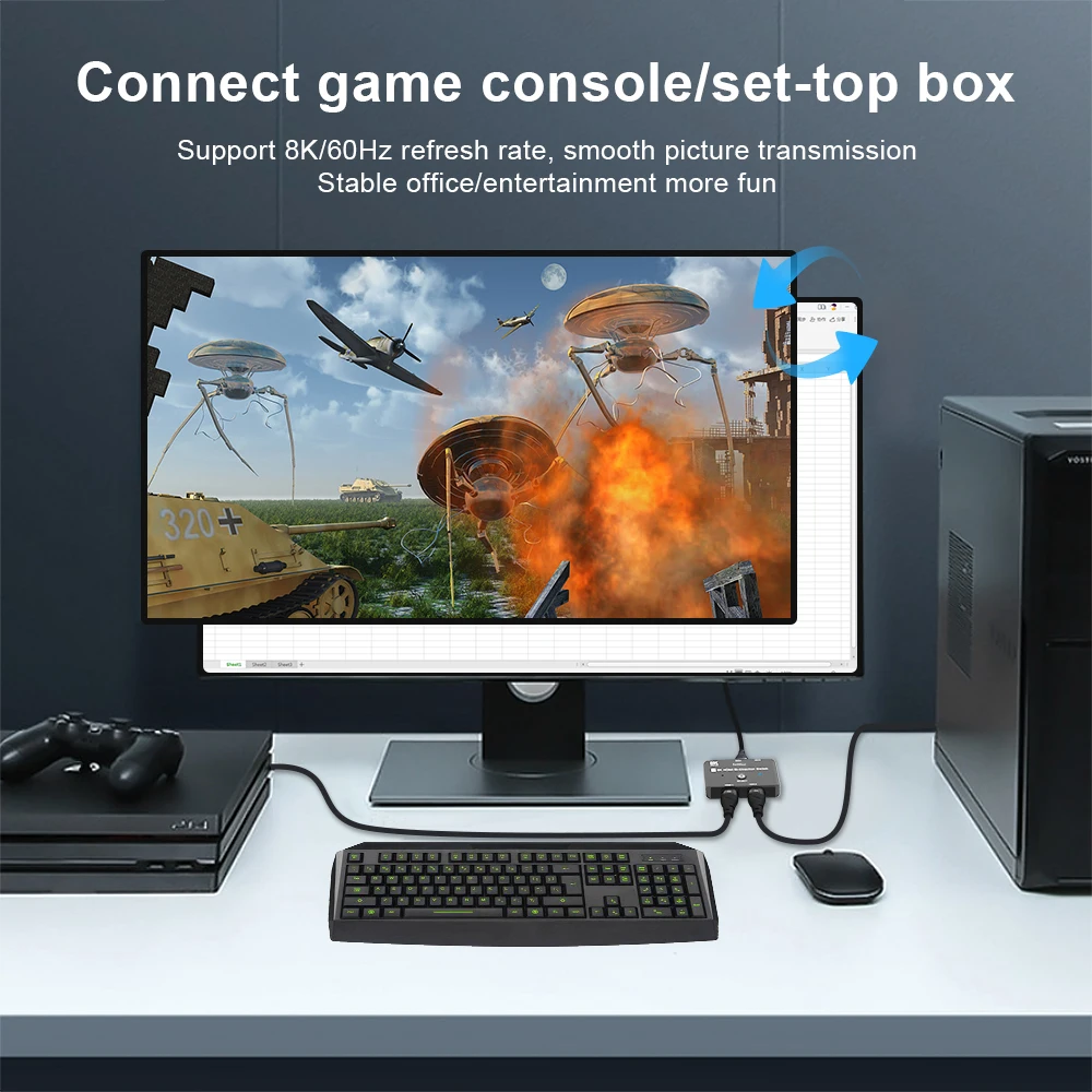 Для любителей игр, подключите PS5 или Xbox x к телевизору 8K через наш HDMI-совместимый коммутатор, а затем выход 4K @ 120Hz, который принесет Гладкий игровой опыт для геймеров.