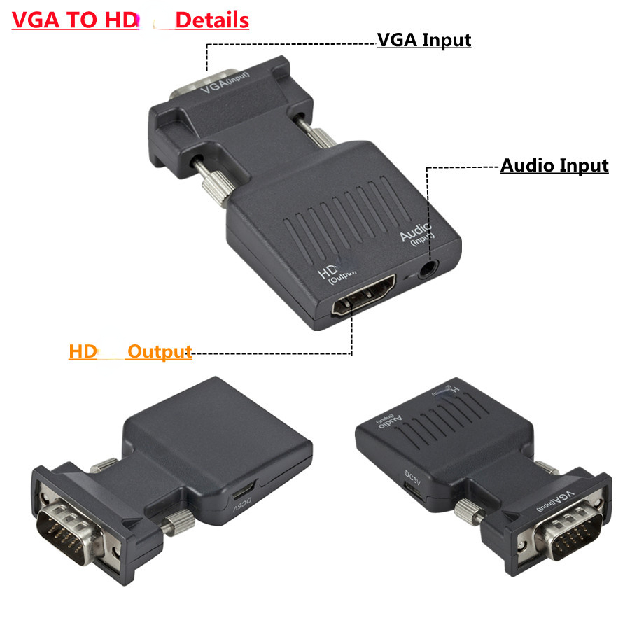 1. Он используется для преобразования видео VGA и аналогового аудиосигнала 3,5 мм на вашем компьютере в сигнал, совместимый с HDMI, и отображения его на большом экране HDTV.