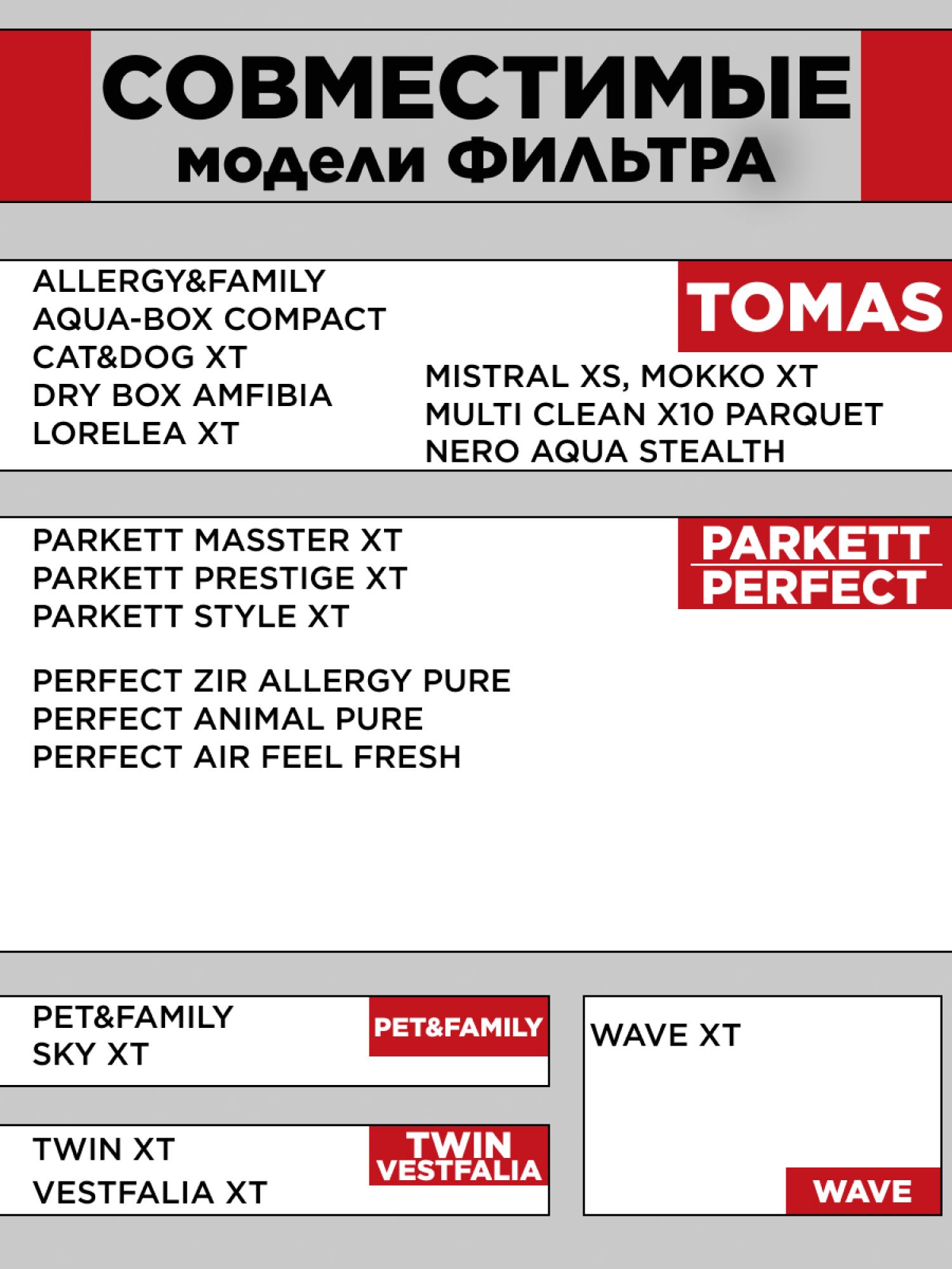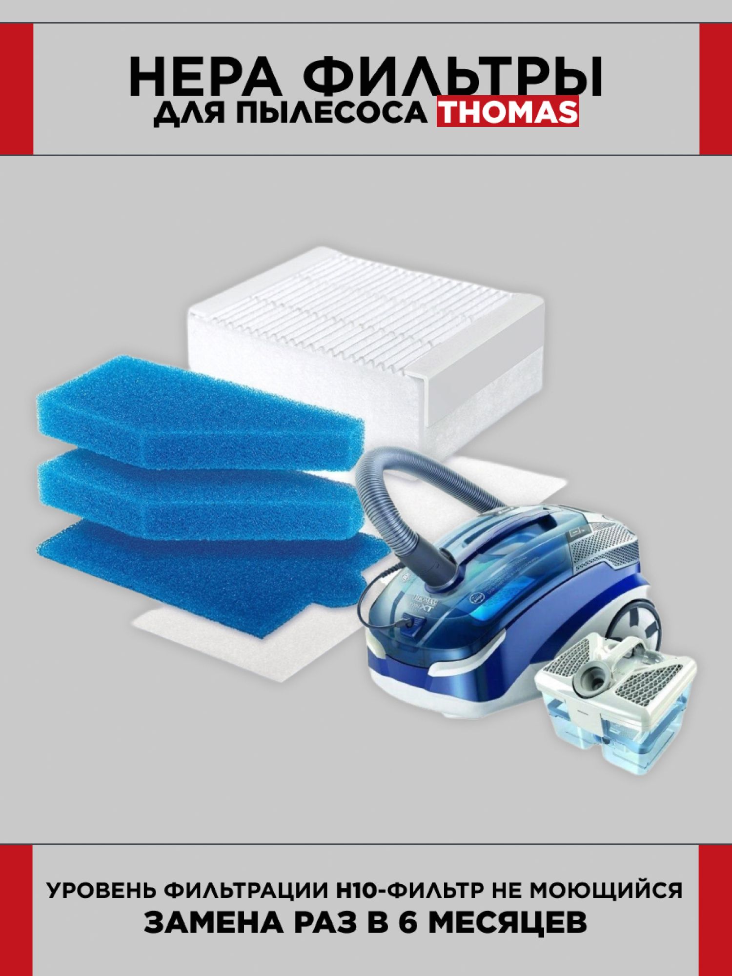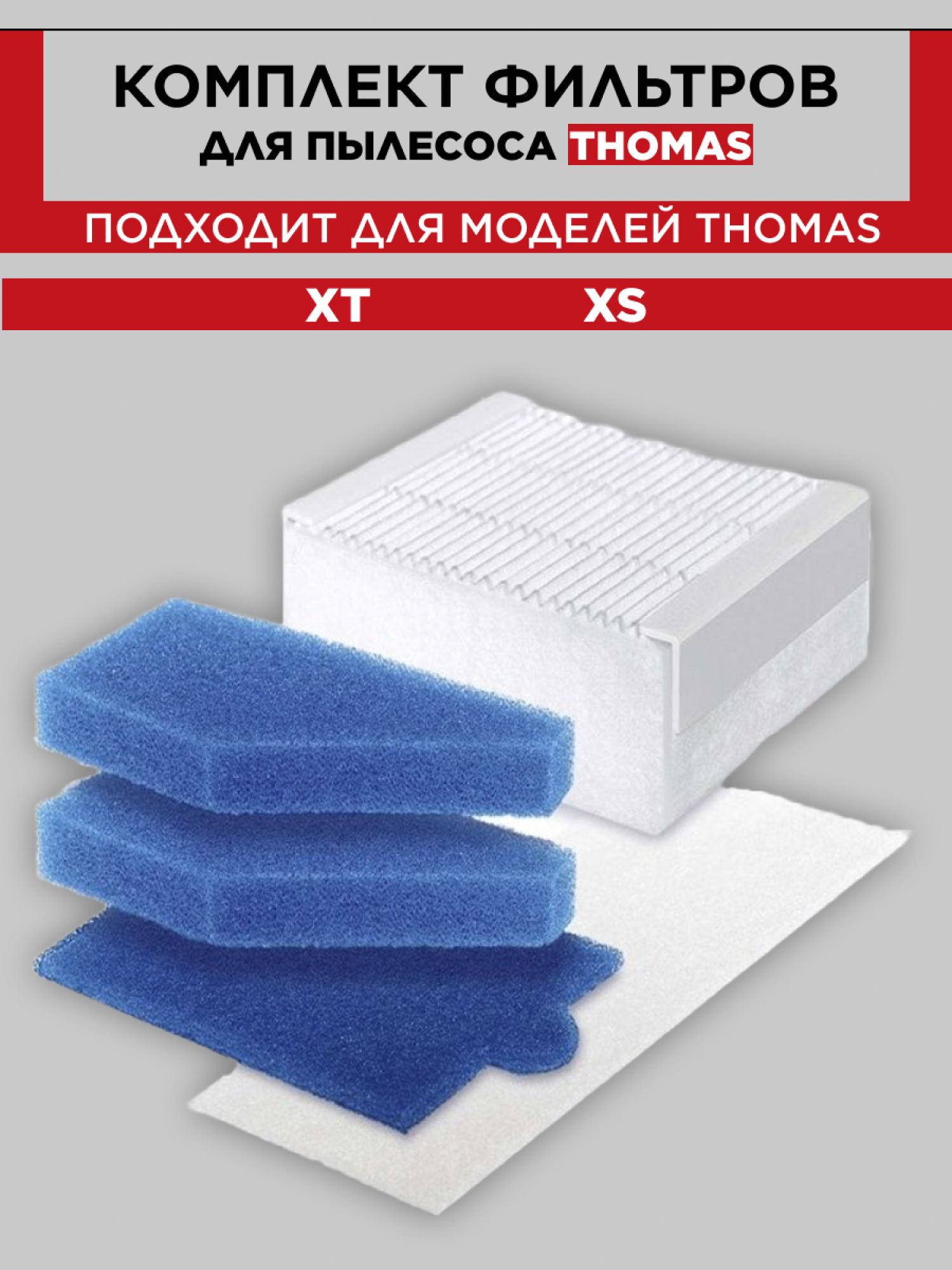 Описание: Набор фильтров для пылесоса Томас Thomas серии XT/XS входной моторный HEPA фильтр аквасистемы микрофильтр отлично задерживает мелкодисперсные частички пыли, в том числе аллергены. В комплект входит моторный фильтр для очистки воздуха от пыли, фильтр HEPA, микрофильтр и два фильтра аквасистемы. Согласно рекомендациям производителя, фильтр для пылесоса томас нужно менять не реже одного раза в 6 месяцев, а также при снижении мощности всасывания пылесоса. Неро фильтр не моющийся и подлежит замене. Остальные фильтра из набора можно промыть. Хранить в сухом месте, срок годности не ограничен. Совместимые модели с пылесосом Thomas Allergy & Family, Thomas Aqua-Box Compact, Thomas Cat & Dog XT, Thomas Lorelea XT, Thomas Mistral XS, Thomas Mokko XT, Thomas Multi Clean X 10 Parquet, Thomas Parkett Master XT, Thomas Parkett Prestige XT, Thomas Parkett Style XT, Thomas Perfect Air Allergy, Thomas Perfect Air Animal Pure, Thomas Perfect Air Feel Fresh, Thomas Sky Aqua-Box XT, Thomas Twin XT, Thomas Wave XT, Thomas Vestfalia XT