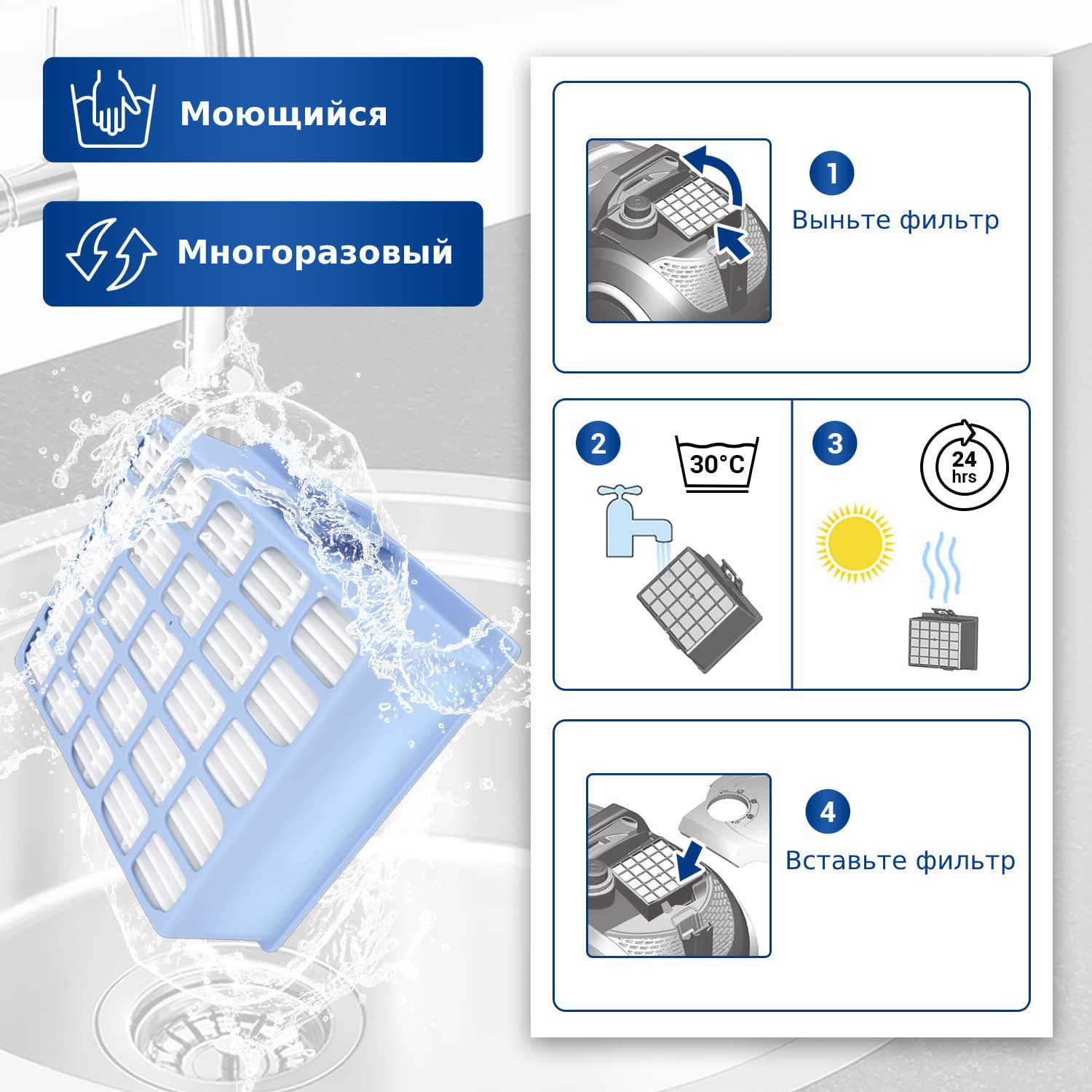 • Высококачественный сменный фильтр, который можно промывать и использовать повторно.⠀