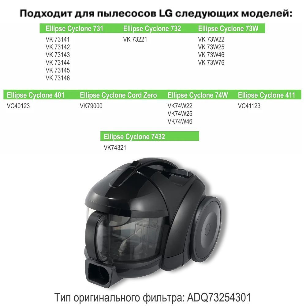 HEPA фильтр для пылесоса LG тип ADQ73254301 серии Ellipse Cyclone VK731.., VK73W.., VC401..
