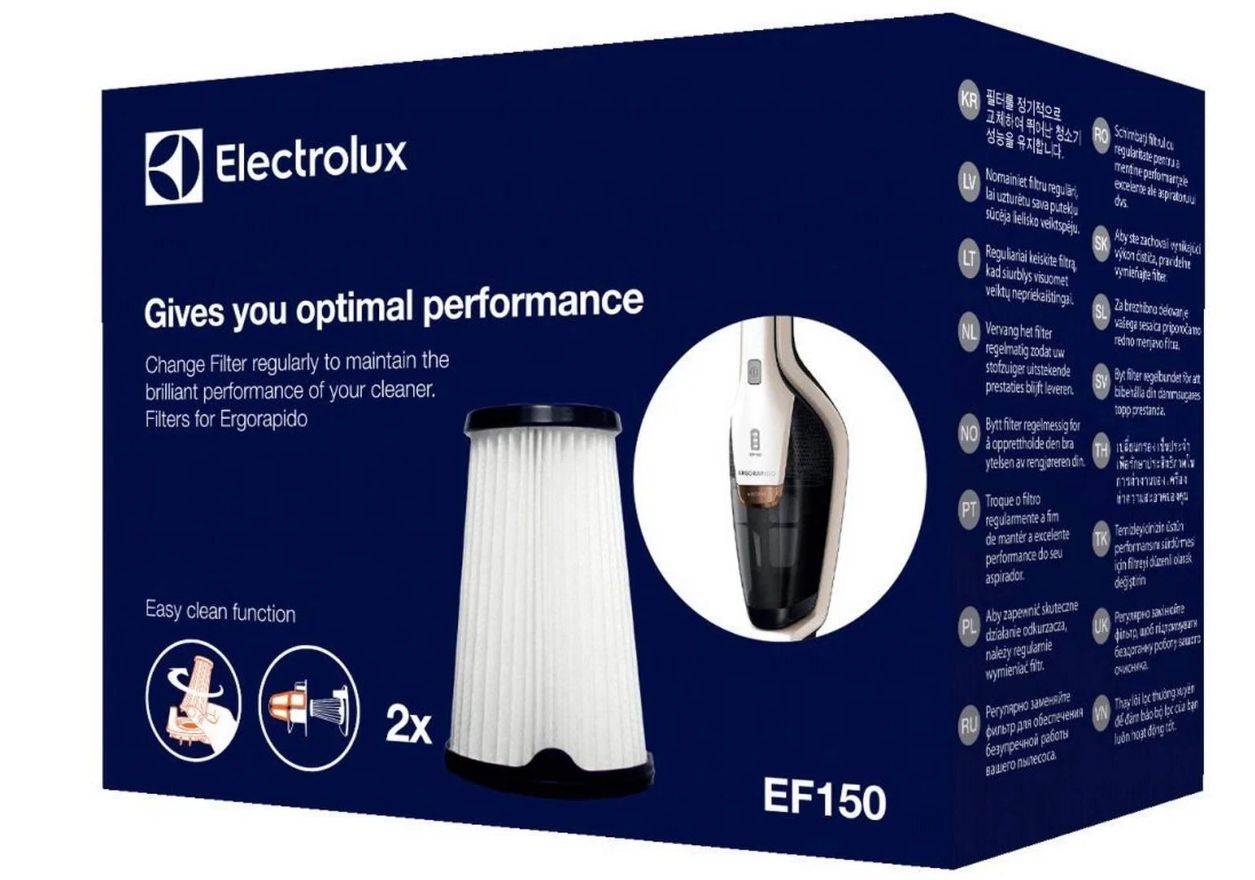 Описание: Фильтр Electrolux EF150 обеспечит высокий уровень фильтрации и надежную работу легендарного аккумуляторного пылесоса Electrolux. Комплект фильтров Electrolux EF150 продлит срок службы вашего пылесоса и сохранит ваше здоровье. Фильтр HEPA Electrolux EF150 будет задерживать мельчайшие частички пыли, делая сухую уборку максимально эффективной. Аксессуар предназначен для вертикальных пылесосов Electrolux ErgoRapido (EER73IGM, EER77MBM, EER7ALLRGY). В комплект входят два Hepa фильтра. Фильтр для пылесоса Electrolux EF150 - это высококачественный фильтр, разработанный для использования с пылесосом ErgoRapido. Регулярная замена фильтра обеспечивает сильный поток воздуха и высокую мощность всасывания в пылесосе. Фильтр помогает поддерживать максимальную производительность пылесоса. Фильтр легко заменить и использовать. Вы также можете помыть его.
