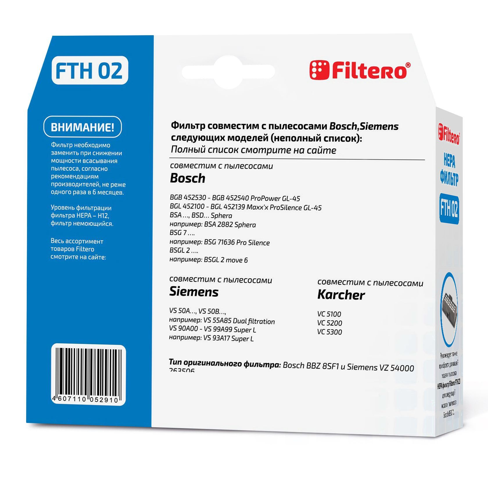 Описание: Фильтр Filtero FTH 02 уровня фильтрации НЕРА Н 12.