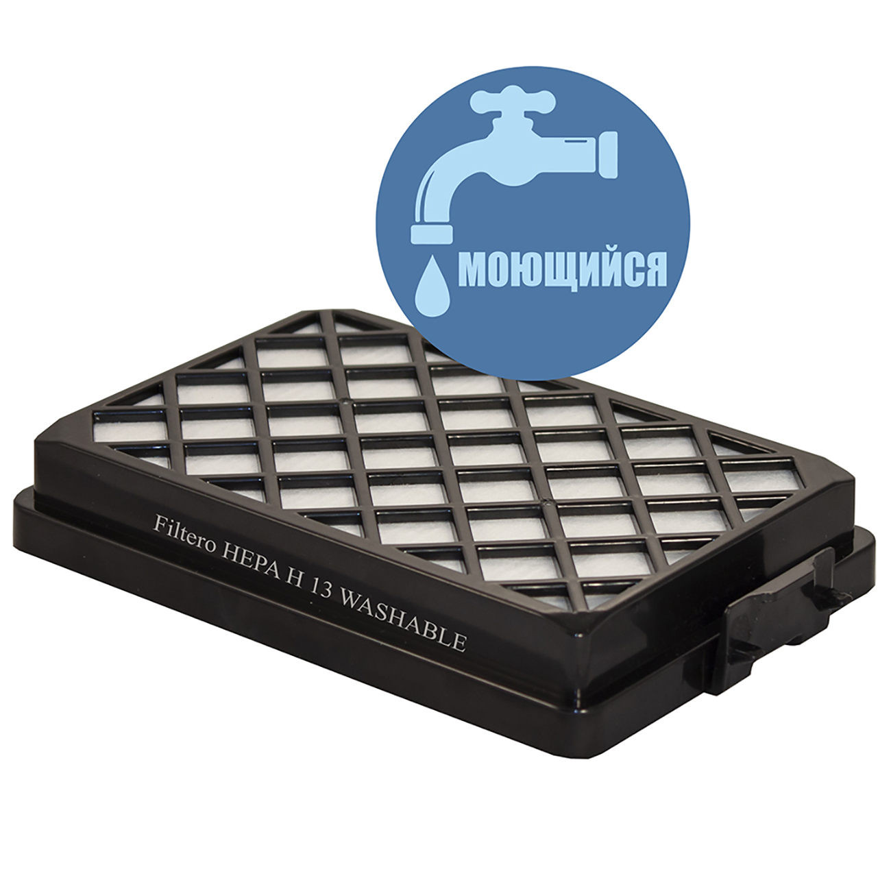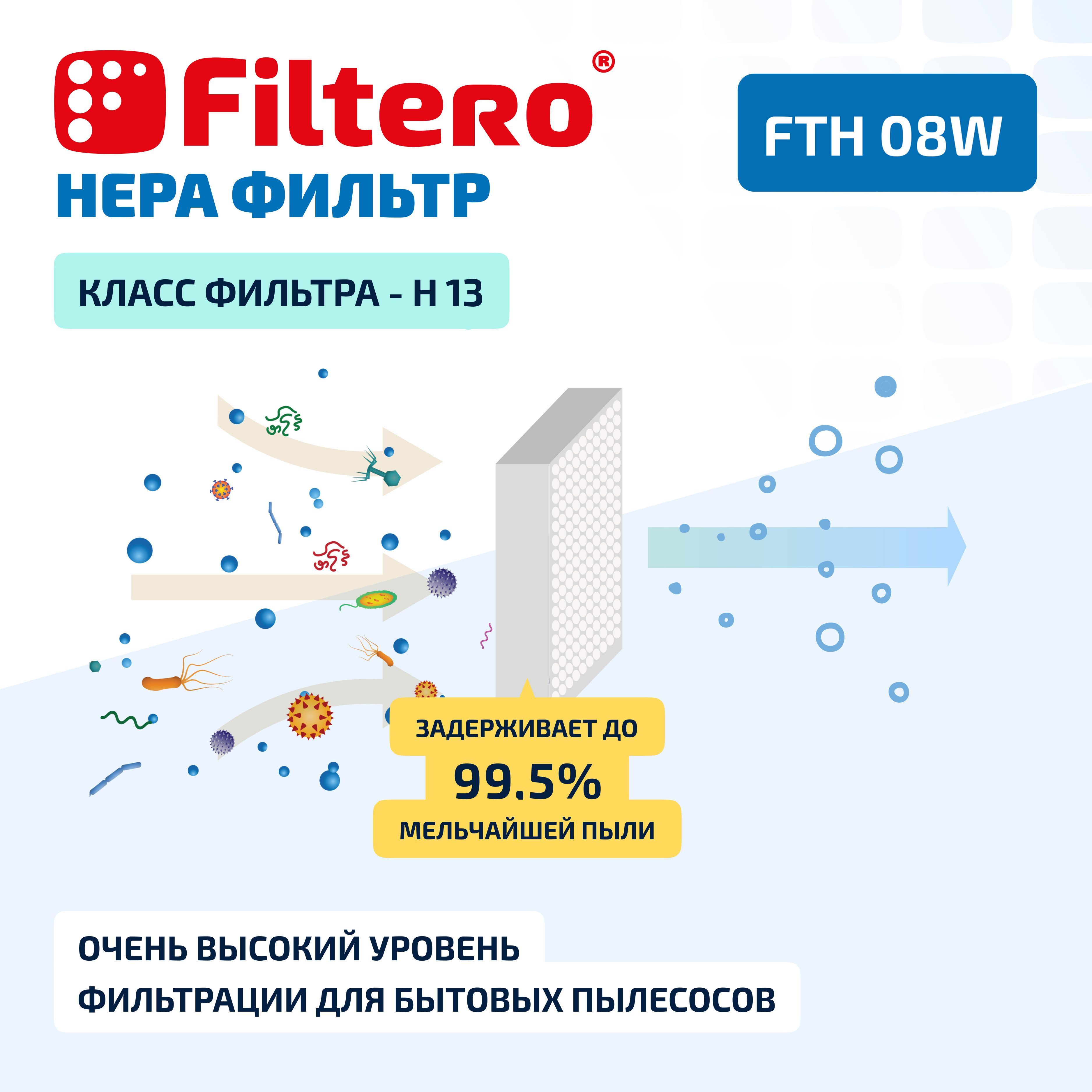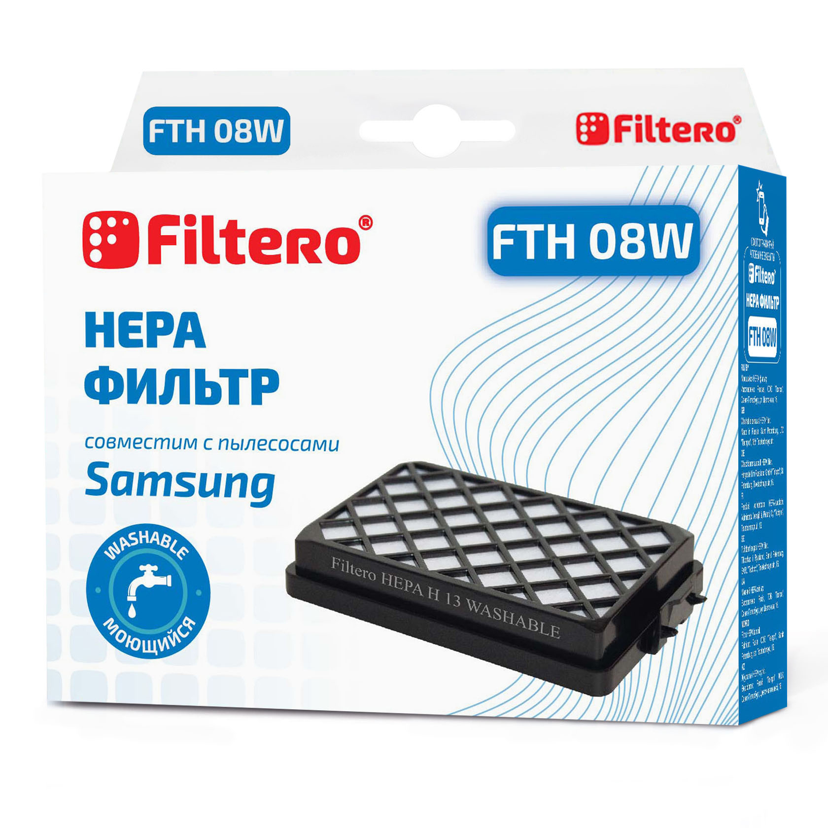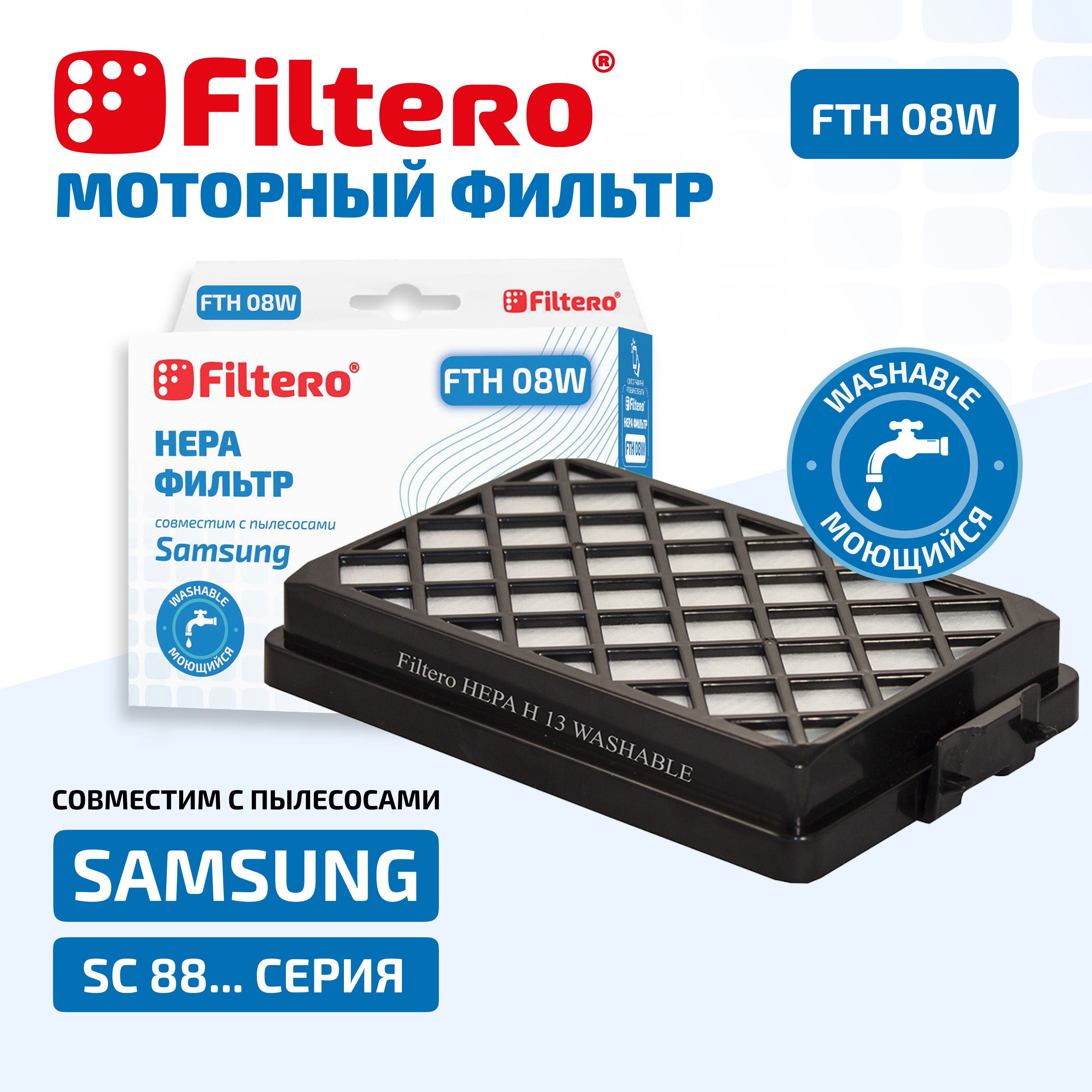 Моющийся НЕРА фильтр для пылесосов SAMSUNG Filtero FTH 08 W (washable) с самым высоким для бытовых фильтров уровнем фильтрации - H13, превосходно задерживает мельчайшие частицы пыли и аллергены с очисткой воздуха до 99,95%.