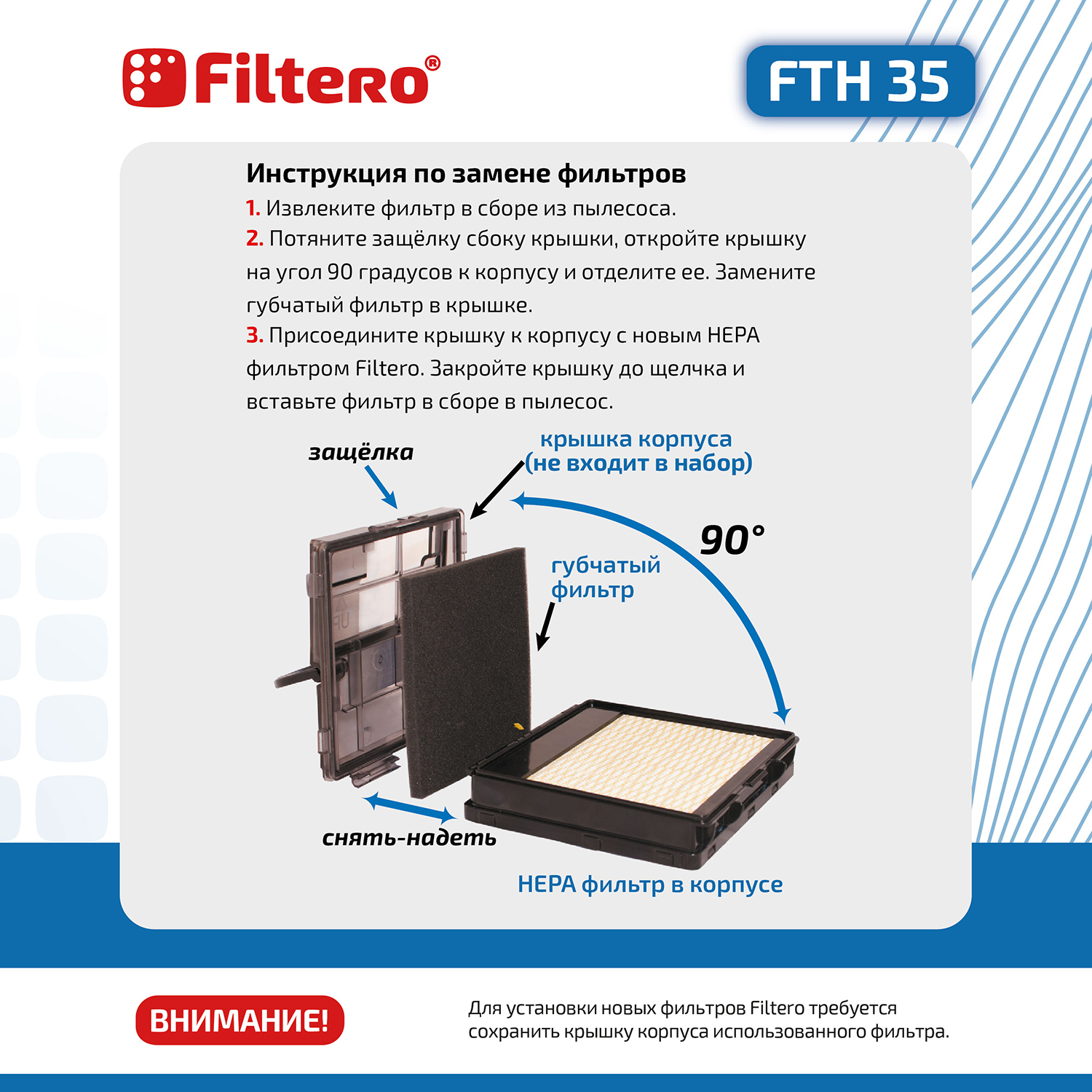 Описание: Немоющийся фильтр Filtero FTH 35 имеет уровень фильтрации НЕРА Н 12.
