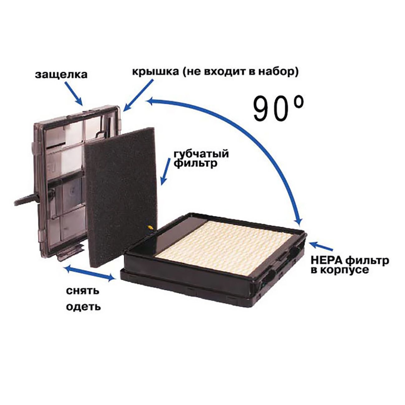 1 НЕРА фильтр (в пластиковом корпусе без крышки) уровня фильтрации НЕРА Н 12. 1 губчатый моторный фильтр.