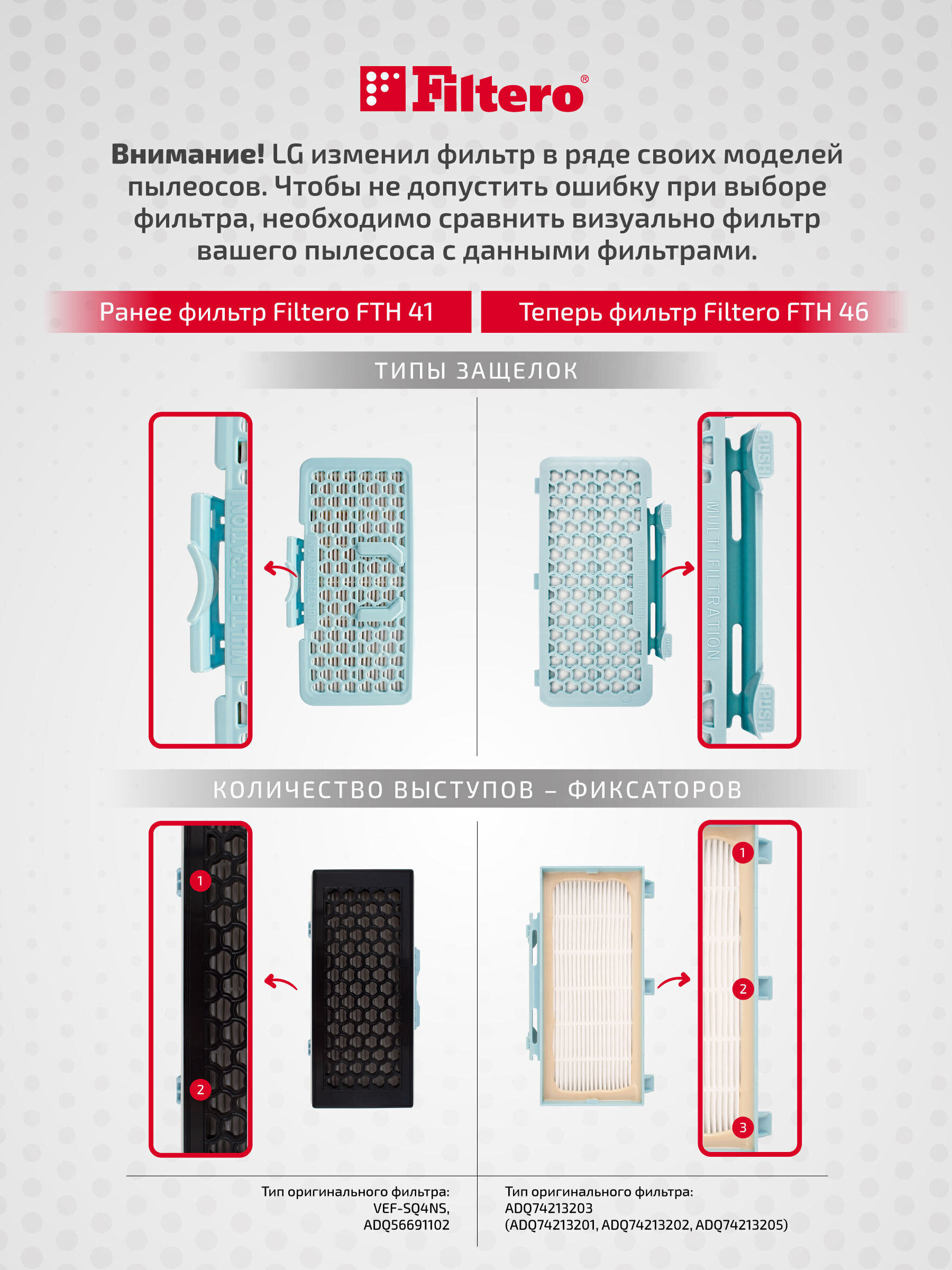 Описание: Внимание! Некоторые модели серий пылесосов LG, помеченных *, в зависимости от года выпуска, совместимы либо с НЕРА фильтром Filtero FTH 46, либо с НЕРА фильтром Filtero FTH 41.